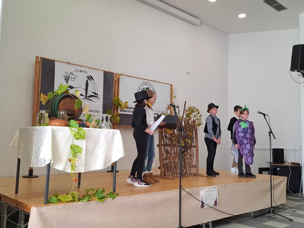 V nedeljo, 9. novembra, pa je martinovanje nadaljevalo svoj praznični utrip v Dobrovniku. Dogajanje je potekalo v znamenju krsta mošta. Učenci Dvojezične osnovne šole Dobrovnik pa so z veliko vnemo in ustvarjalnostjo predstavili dela v vinogradu skozi vsa letna obdobja. Njihov nastop je s toplino in pristnostjo prikazal bogato vinsko tradicijo kraja.