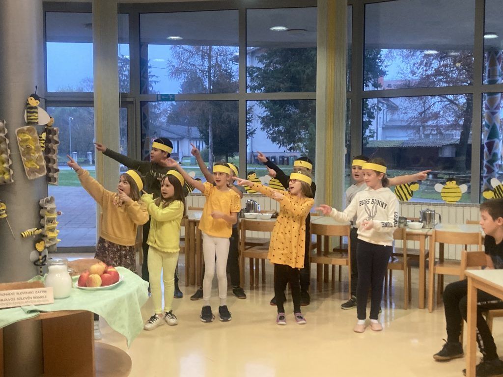 V petek, 18. 11. 2022, smo se zjutraj zbrali v jedilnici in pojedli tradicionalni slovenski zajtrk (kruh, maslo, med, mleko). Letos smo ga obeležili s sloganom »Zajtrk z mlekom – super dan!« To je dan, ko se spomnimo in premislimo o načinu prehranjevanja, o tem, kakšno hrano izbiramo ali pripravljamo ter kaj jemo. Ta projekt nas tudi spomni, da je hrana, ki jo pripravljajo ljudje na naših kmetijah bolj sveža in okusnejša, med iz našega čebelnjaka pa slajši. O darovih narave pa so v pesmicah spregovorili tudi učenci 3., 4. in 6. razreda v slovenskem, madžarskem in nemškem jeziku.