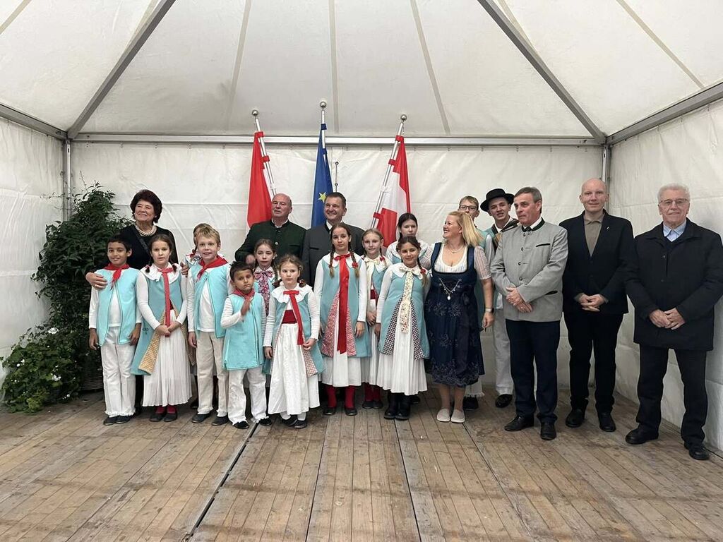 Otroška folklorna skupina Društva Kočevarjev-staroselcev iz Občic je oktobra gostovala na Dunaju v hiši Haus der Heimat. Na povabilo zveze Verband der Deutschen altösterreichischen Landsmannschaften v Avstriji (VLÖ) smo nastopili na letnem srečanju. Dogodka sta je udeležila tudi avstrijski kancler dr. Christian Stocker in Karl von Habsburg.