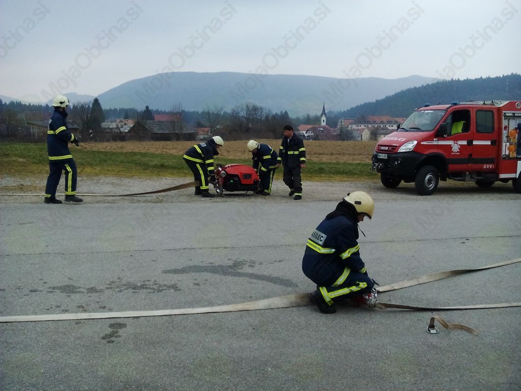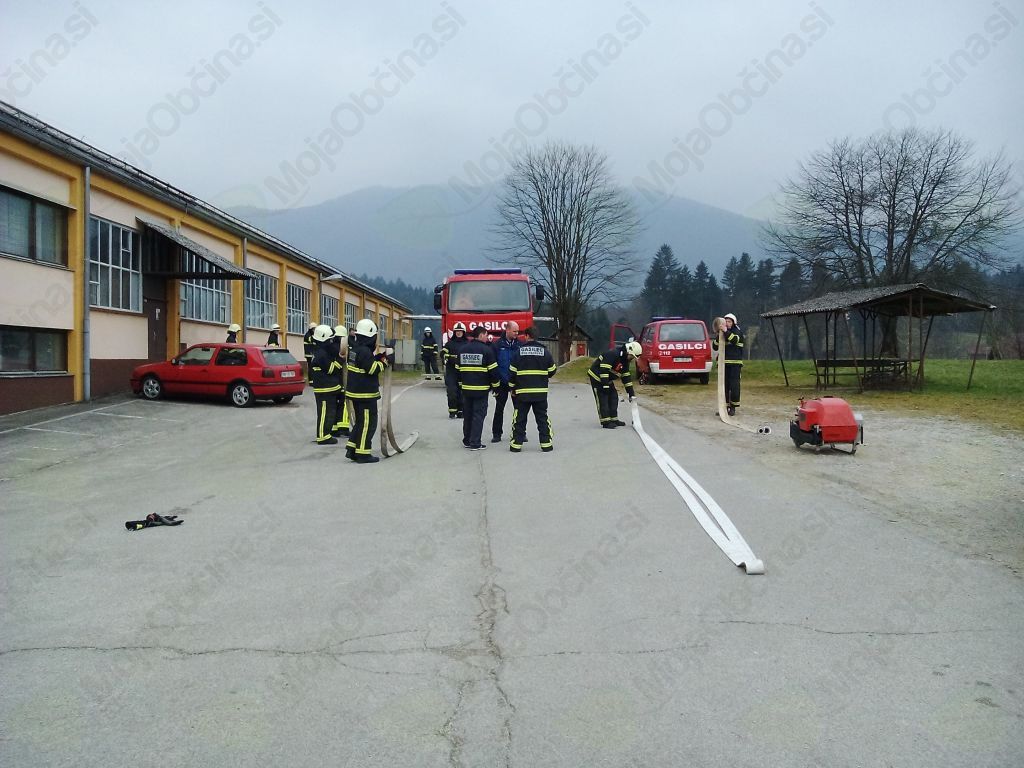 Tečajniki so svoje pridobljeno znanje na teoretičnem delu tečaja praktično uporabili na zaključni vaji. Izvedli so gašenje ob požaru v industrijskem objektu; notranji napad in gašenje z uporabo izolirnih dihalnih aparatov, postavitev napajanja gasilske cisterne iz hidranta, postavljanje cevovodov ter zunanje gašenje objekta.