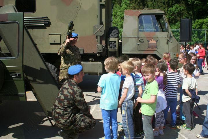 Na igrišču Osnovne šole Dolenjske Toplice smo 8. maja gostili pripadnike Slovenske vojske iz vojašnice Franca Uršiča iz Novega mesta. Med 10. in 11. uro so učencem šole, varovancem vrtca in strokovnim delavcem predstavili dejavnosti, ki jih izvajajo pripadniki Slovenske vojske. Zbrane je nagovoril tudi župan Jože Muhič, ki se je udeležil tega dogodka.