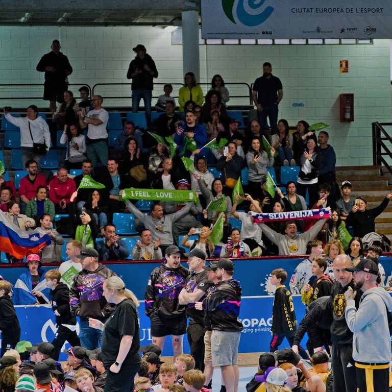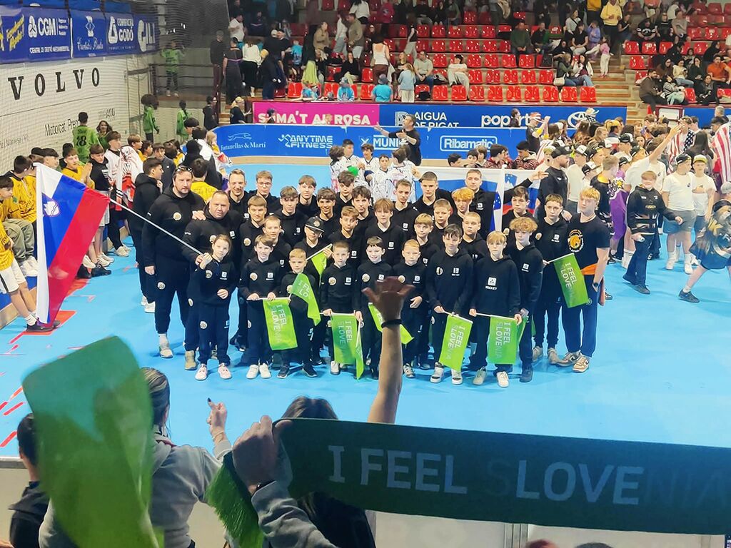 Otvoritvena slovesnost je potekala v športnem in prijateljskem duhu, pri čemer so slovenske zastave ponosno vihrale tako med ekipami kot tudi na tribunah, kjer so naši navijači že prvi dan poskrbeli za odlično vzdušje.