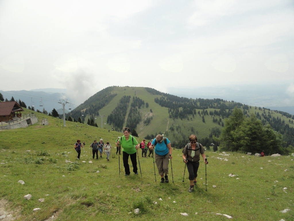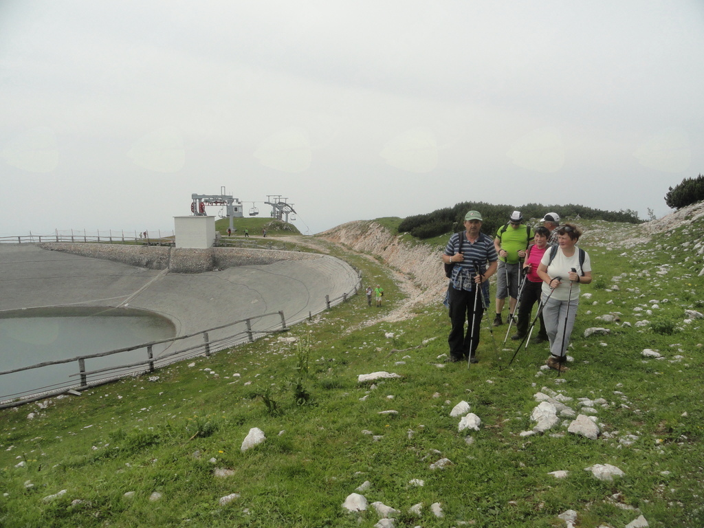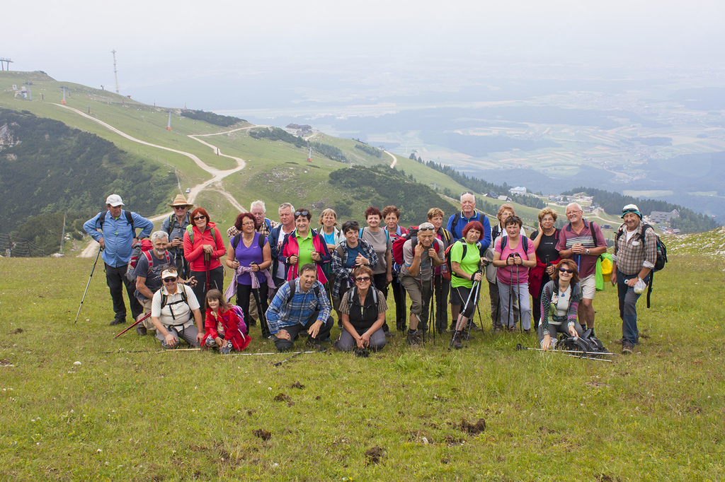 Krvavec nudi nešteto možnosti za rekreacijo in zabavo vsem starostnim skupinam. Mi smo avtobus zapustili na Planini Jezerca, krenili smo do Planšarije Pr' Florjan, mimo Doma na Krvavcu, nekateri do samega vrha Veliki Zvoh (1971 m), ki se je nakazoval v poletnih meglicah. Glede na svoje sposobnosti smo se vsi odpravili pohajkovat. Pogledi so uhajali v dolino, na travnike, polne cvetočih rastlin s Kranjsko lilijo na čelu, kravice, ki so nas z začudenjem opazovale, vse to je ustvarilo čudovito sliko, sliko narave, ki je tudi tu enkratna. Plečnikova kapelica s 50 kg težkim zvonom, za izpolnitev želje. Lepa skupina je dosegla vrh, se obvezno fotografirala ob akumulacijskem jezeru, ki služi za zasneževanje površin v zimskih mesecih. Sledil je spust v Tiho dolino, na Plažo, kjer smo uživali na ležalnikih ob pijači, sladoledu, klepetu ... Kar ostali bi tu, tako prijetna temperatura je bila v ozračju! Tudi postanek na turistični kmetiji Pr Ambružarju je bil še vedno na višini preko 1000 m. Vrnili smo se v dolino, v vroč dan ... Bil je dan, ki je že zjutraj ponujal najboljše možnosti, da ga lepo preživimo in smo ga. Marsikomu je dal idejo za družinski izlet, za izlet z vnuki, saj je naša Alja dokazala, da zmore, z babico in dedijem je dosegla sam vrh.