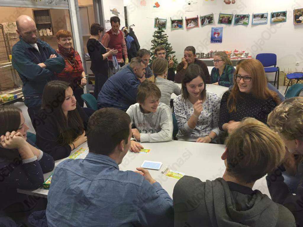 V sredo, 16.12.2015, se je na OZRK Novo mesto odvijalo prav posebno srečanje. Družili so se namreč novomeški gimnazijci ter uporabniki naše razdelilnice toplih obrokov. Srečanje se je zgodilo na pobudo dijakov 2. letnika novomeške gimnazije, ki so na srečanje prišli z učiteljem Jernejem Cimpermanom ter s podporo nekdanje gimnazijske učiteljice in prostovoljke Nuše Rustja. Srečanje se je začelo s toplim čajem in potico ter z medsebojnim spoznavanjem in željami za leto 2016 vseh udeležencev. Nato so se vsi zbrani razdelili v tri skupine. Prva skupina je pekla medenjake, druga je izdelovala okraske, tretja pa krasila našo smrečico in prostor druženja. Sledile so družabne namizne igre in sladkanje s še toplimi medenjaki. Dijaki so uporabnike razdelilnice še razveselili z uporabnimi darili ter jih tako prijetno presenetili. Ob koncu druženja je učitelj Jernej zaigral še na orglice, vsi skupaj pa so zapeli še nekaj pesmi. Po skupinskem slikanju smo prišli do zaključka, da je bilo druženje uspešno in predvsem zelo prijetno za vse prisotne.