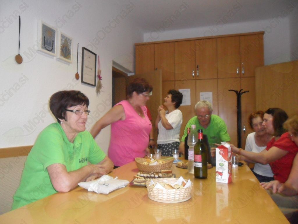 Ob vrsti prireditev ob Topliški noči smo na stežaj odprli tudi vrata našega društva. Neznosna vročina je ob odprtju ob 13. uri preprečila, da bi se pri nas trlo obiskovalcev. Smo pa sami v prijetnem hladu naših prostorov poskrbeli, da se je nekaj dogajalo. Zaigrali smo nekaj iger pikada in zmagovalec je, no, ni, plačal je nato predsednik napitek v prijetni senci lokala Pri mostu. No, pa v društvu nikakor nismo bili vseskozi sami. Obiskal nas je zakonski par, ki je sicer iskal informacije o pohodništvu, pa se je zanimal tudi za naše delovanje. Seveda smo mu za pohod priporočili "naš" Pogorelec. Ko smo se nekoiko pomudili na cesti pred prostori, nas je kar nekaj naših občanov, ki seveda kljub vsem obvestilom niso vedeli za naš dogodek, obiskalo in z zanimanjem prisluhnilo razlagam o dogajanju v društvu. Malo smo jih tudi razvajali s pecivom, nastalo izpod rok naših pridnih članic, in ohlajeno pijačo. Ob 17. uri smo vrata zaprli in se usmerili na zbor za povorko društev. Zbralo se nas je 25. Hvala vsem.