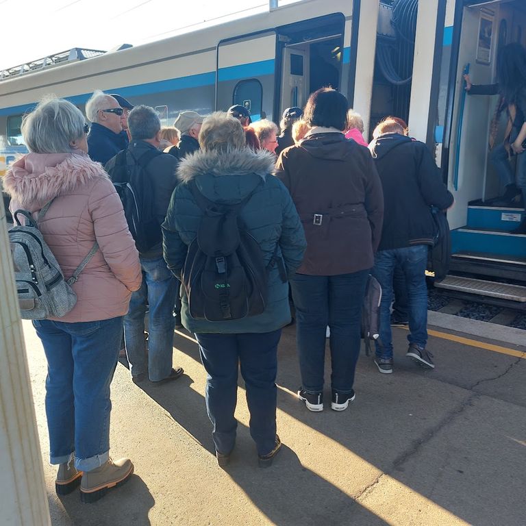 Že v zgodnjih jutranjih urah smo se zbrali na železniški postaji v Bršljinu. Kljub temu, da smo vstali prej, ker se je ura premaknila na evropski čas, ni manjkalo dobre volje in nasmehi so se kar podajali. Dan se je prijetno začel. Zdrveli smo proti Ljubljani. Časa za prestop na ISC vlak je bilo dovolj, da smo si lahko v miru privoščili prvo jutranjo kavico. Vlakovna kompozicija za Maribor je bila dolga, saj smo že mi zasedli cel vagon. Po dveh urah vožnje smo bili na železniški postaji Maribor. Ni bilo daleč do centra mesta, kjer je pred »rdečkasto« Baziliko Marije, ki je ena izmed sedmih v Sloveniji, s Frančiškanskim samostanom, že čakal lokalni vodič.
