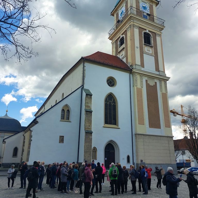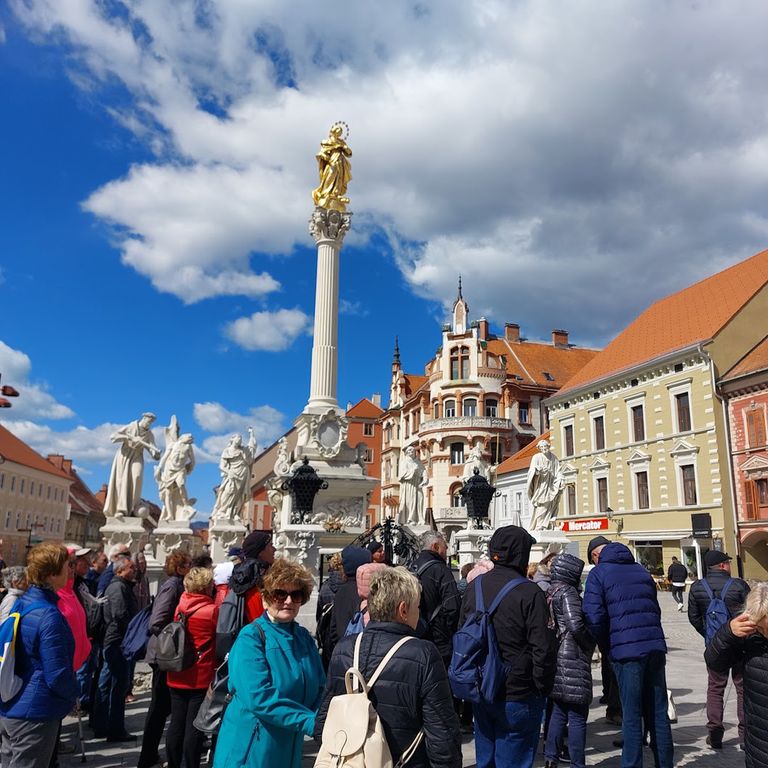 Popeljal nas je na Trg svobode z znamenitim bronastim spomenikom NOB. S trga je lep pogled na mestni grič imenovan Piramida z vinsko trto in ostanki gradu. In že smo bili na Trgu generala Maistra, ki ga poleg spomenika generalu Maistru krasi še velika lipa, spomenik Josipu Jurčiču, fontana in čudovit pogled na Prvo gimnazijo Maribor. Preselili smo se na trikotni Grajski trg, ki je poln mestnega utripa, kjer se nahaja tudi Pokrajinski muzej, Florjanov spomenik in znana kavarna Astoria z »ezl ekom«. Po ozkih, tlakovanih ulicah smo pot nadaljevali na Slomškov trg. Na njem je osrednja znamenitost Stolnica posvečena sv. Janezu Kersniku, spomenik škofa Antona Martina Slomška, ki ima v cerkveni kapeli tudi svoj grob. Vstopili smo v veličastno akustično cerkev, kjer se je čutila prav posebna umirjenost. Iz trga pa še pogled na ogromno zeleno stavbo Pošte Slovenije in na drugi strani na Rektorat, Univerzitetno knjižnico in SNG Maribor.