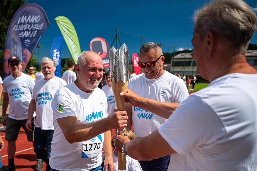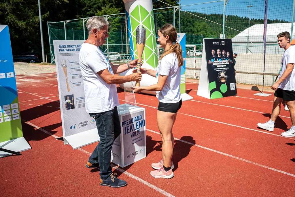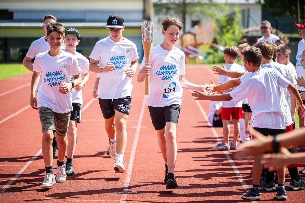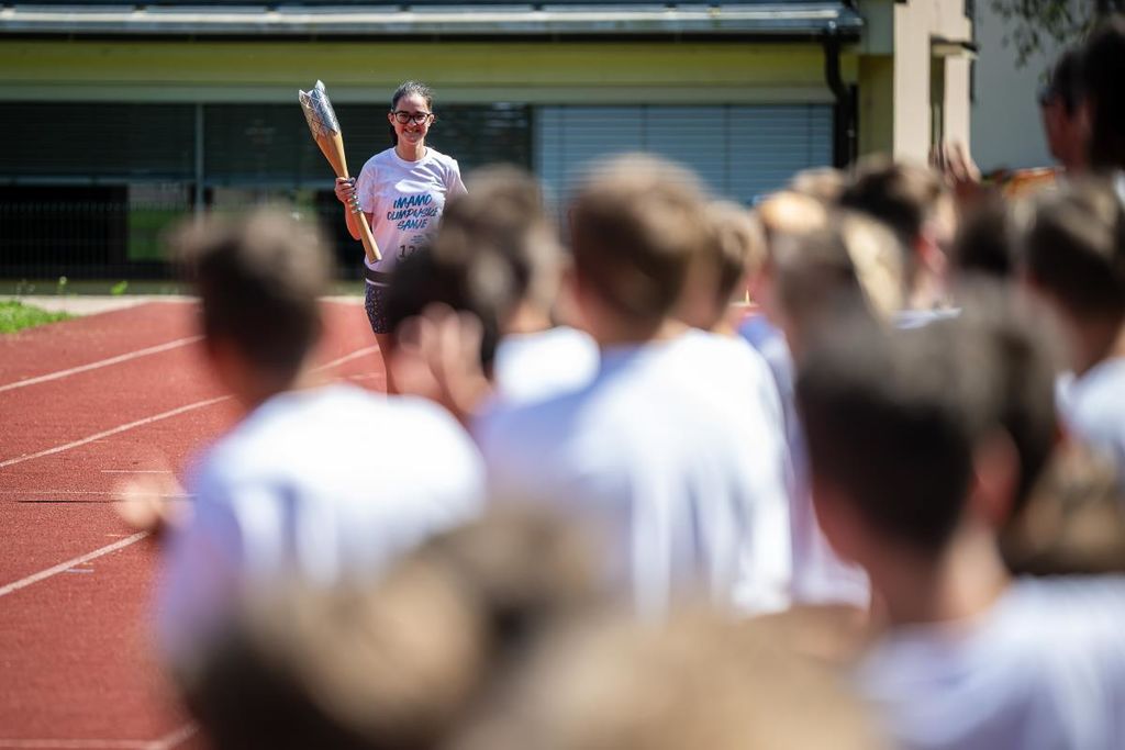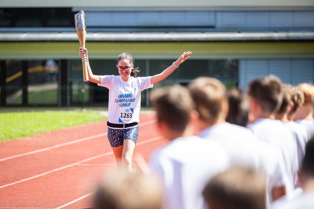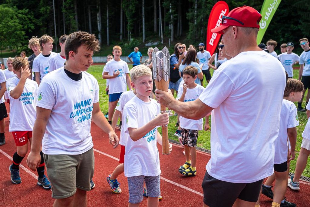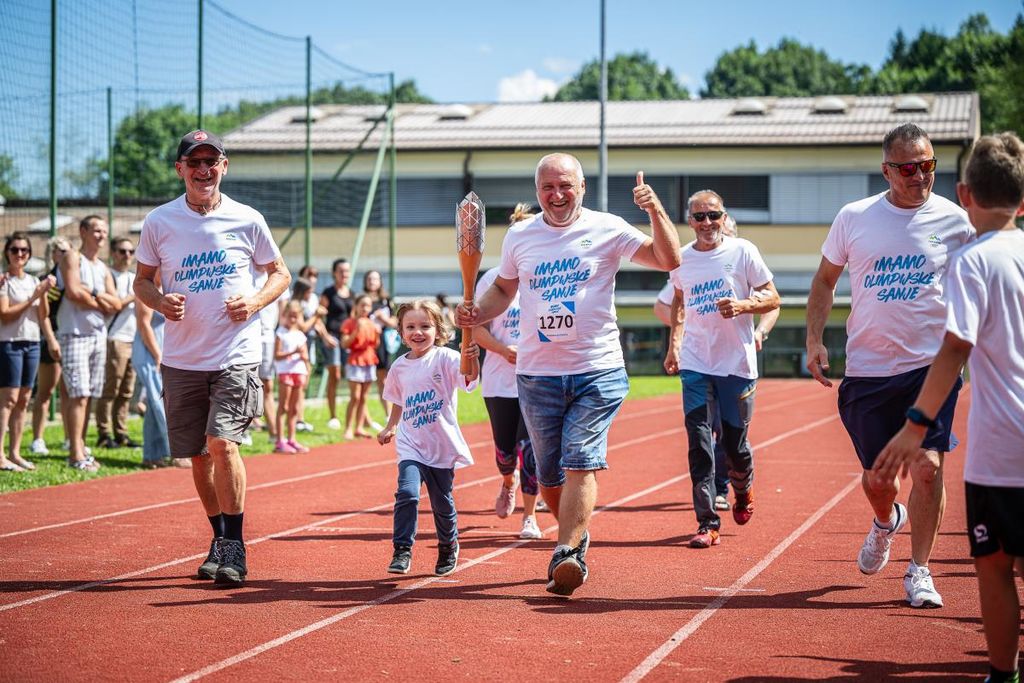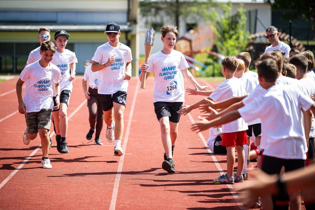 V Dolenjskih Toplicah smo se zbrali na športnem igrišču, kjer sta kuliso ustvarila tekaški krog in mirna okolica gozda. Na tekaškem stadionu je špalir mladih športnih navdušencev in športnikov pričakal baklo in tudi vse nosilce.