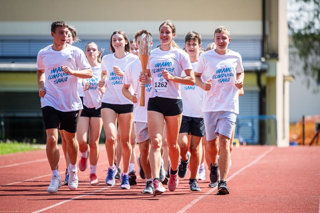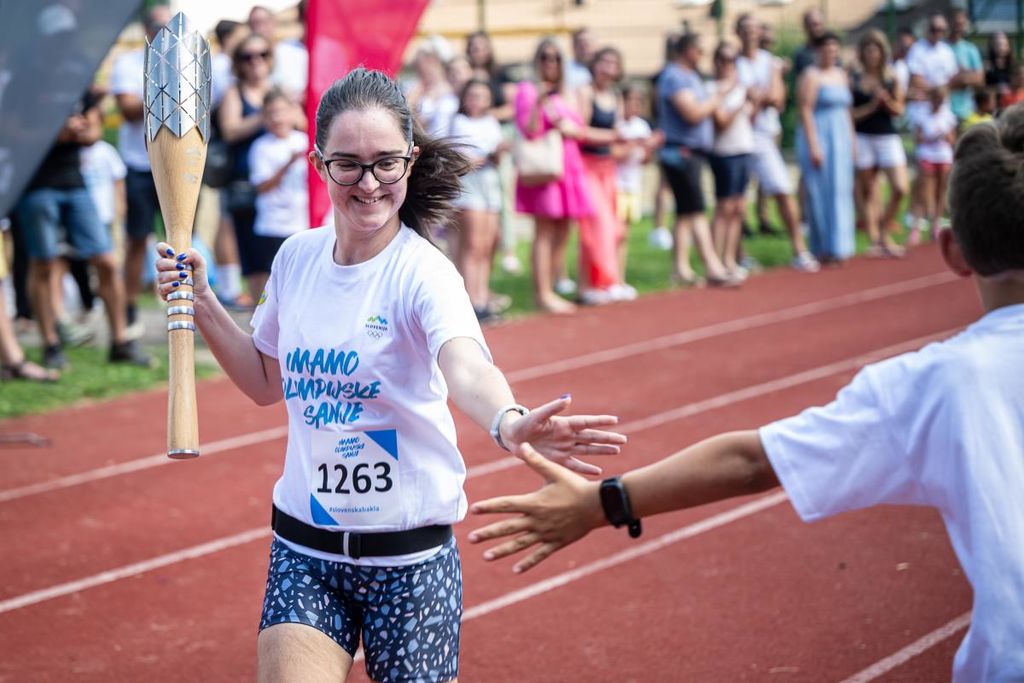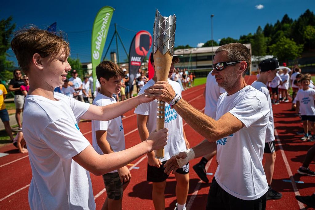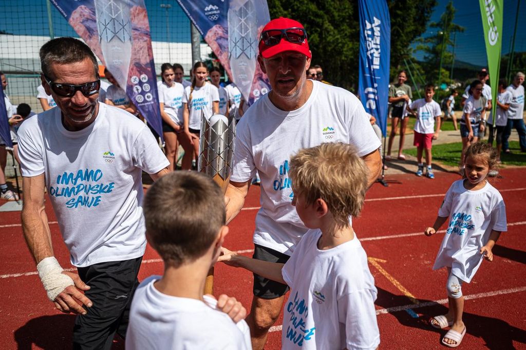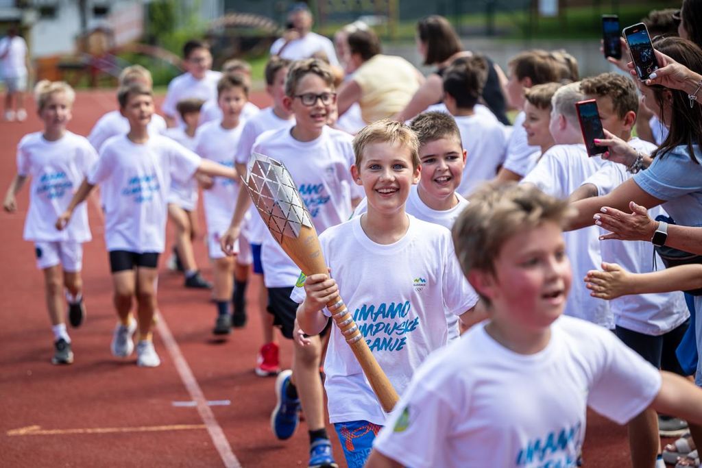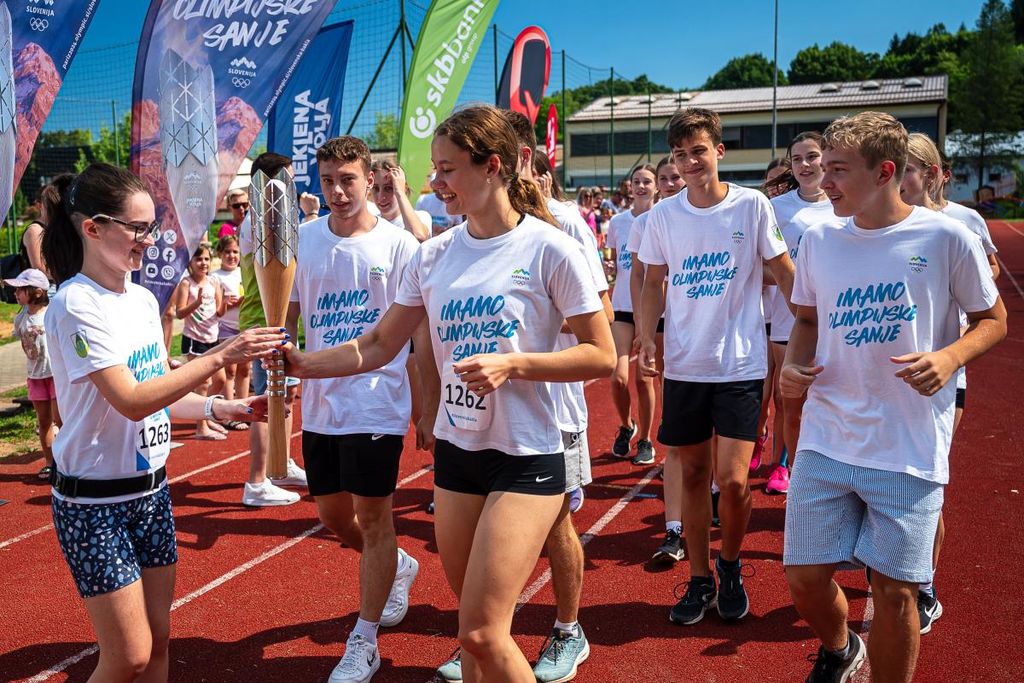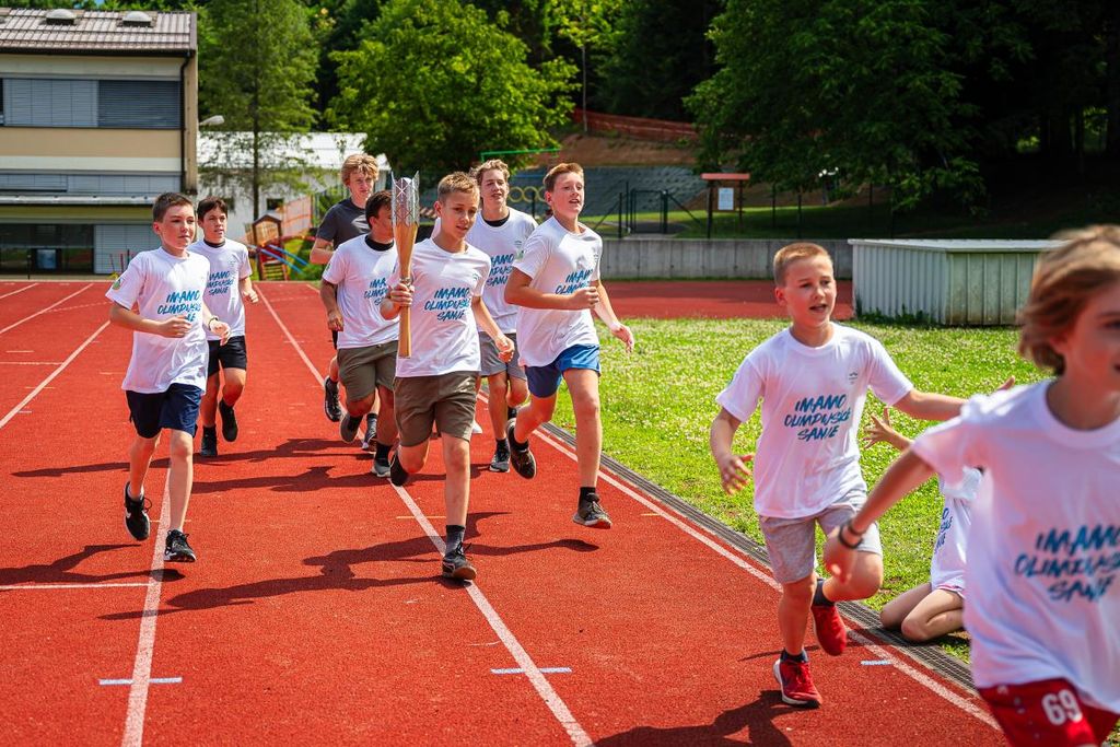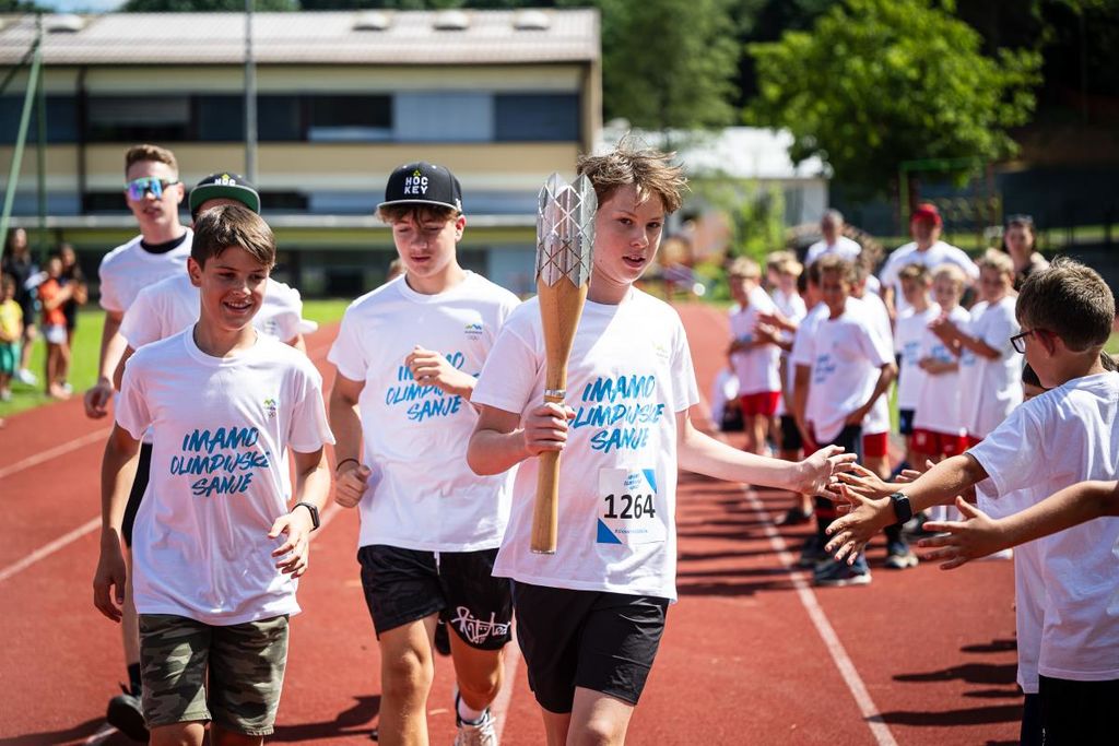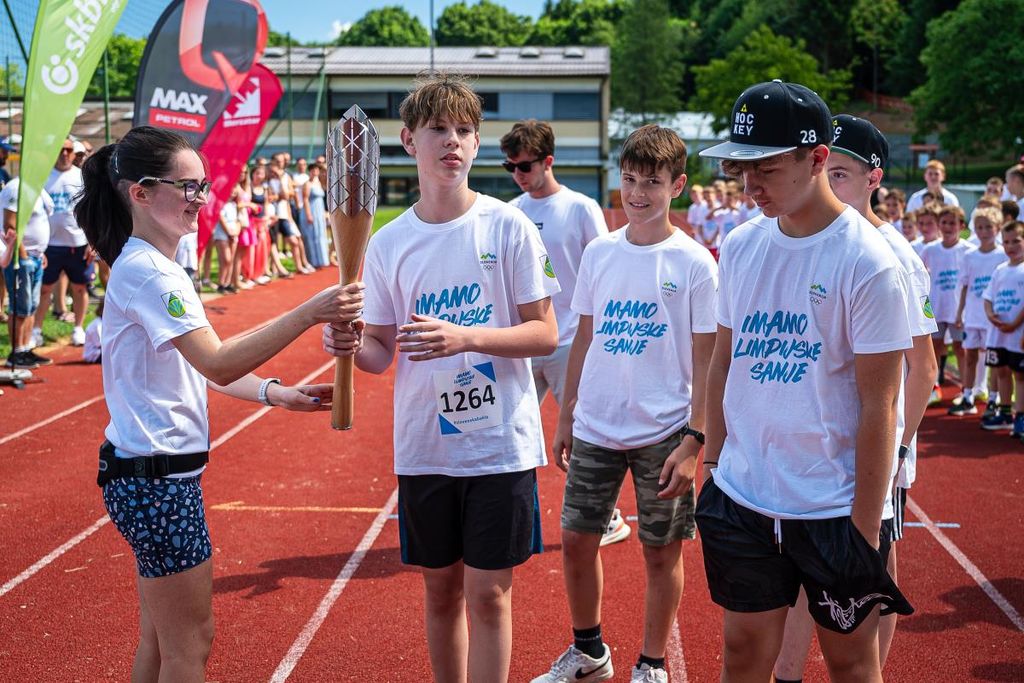 V Dolenjskih Toplicah smo se zbrali na športnem igrišču, kjer sta kuliso ustvarila tekaški krog in mirna okolica gozda. Na tekaškem stadionu je špalir mladih športnih navdušencev in športnikov pričakal baklo in tudi vse nosilce.