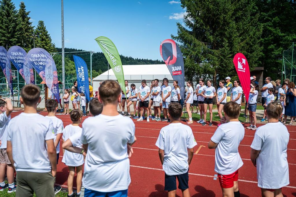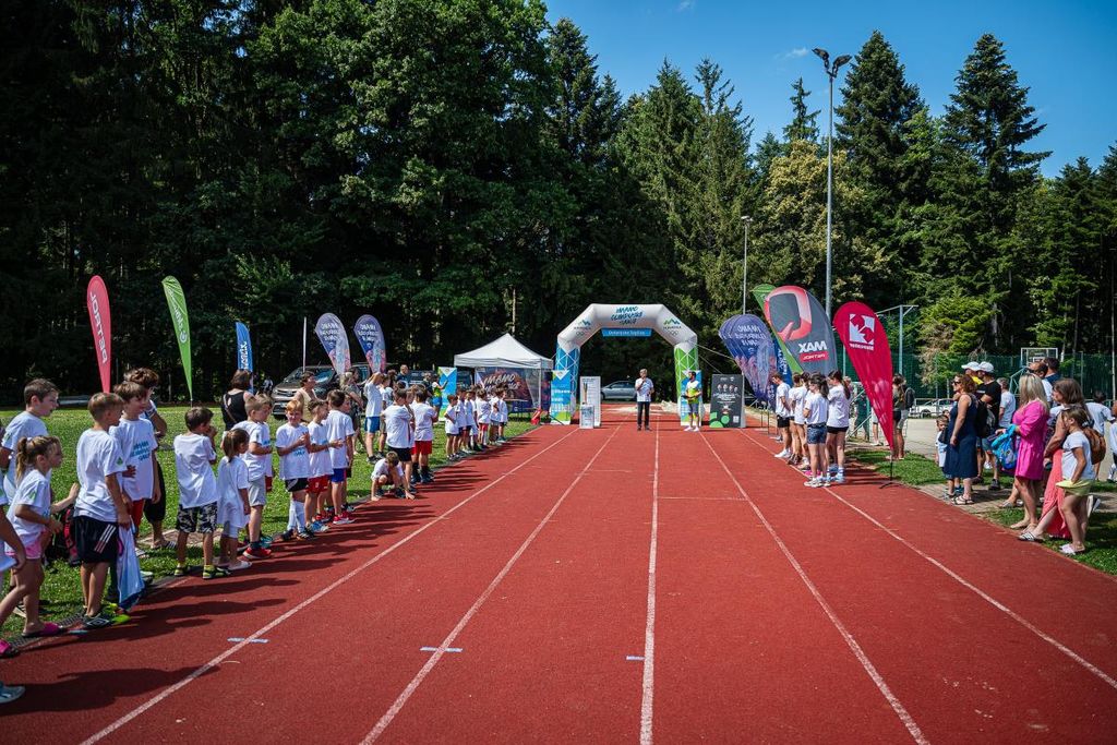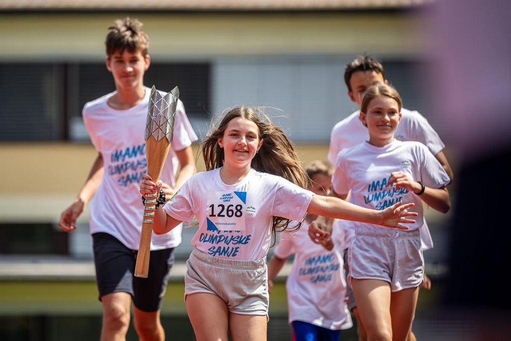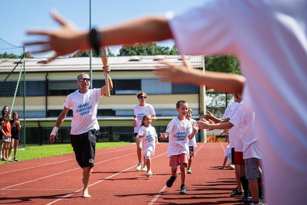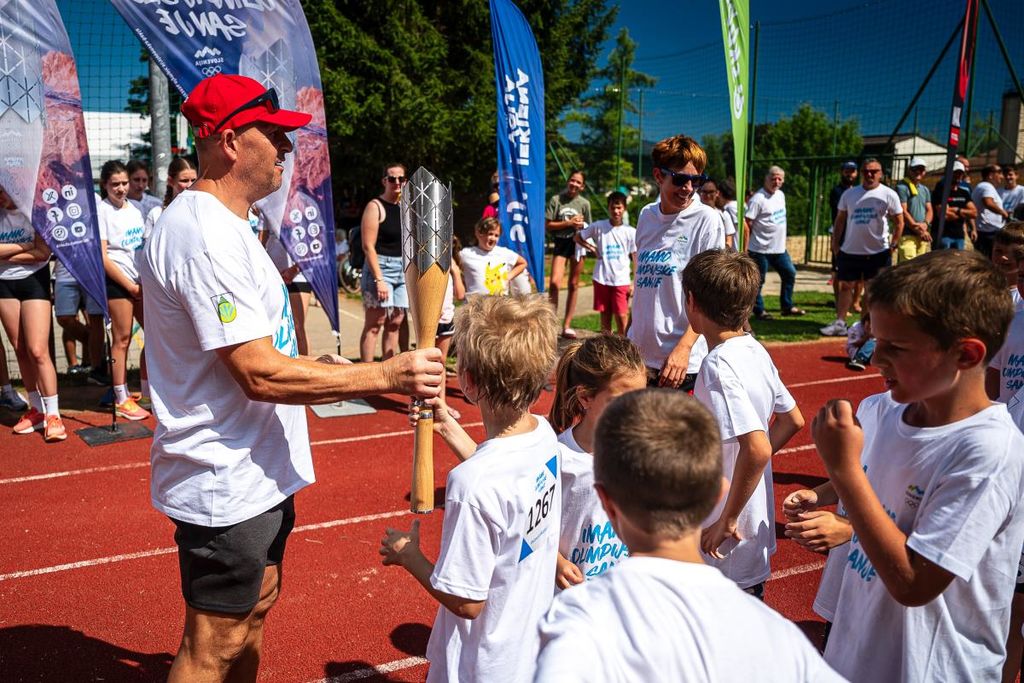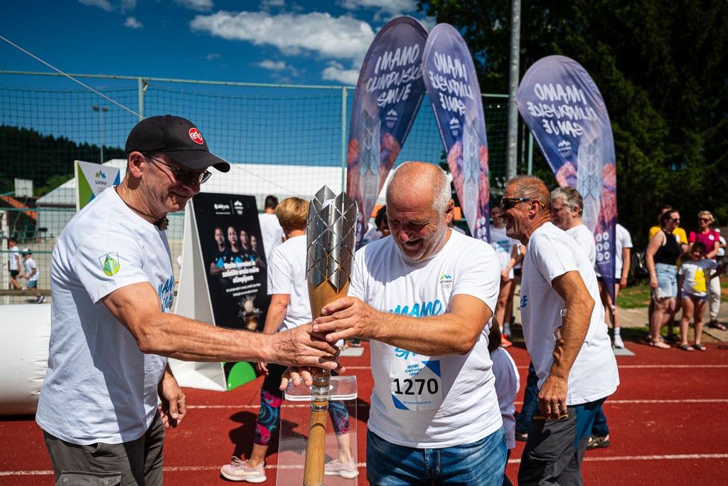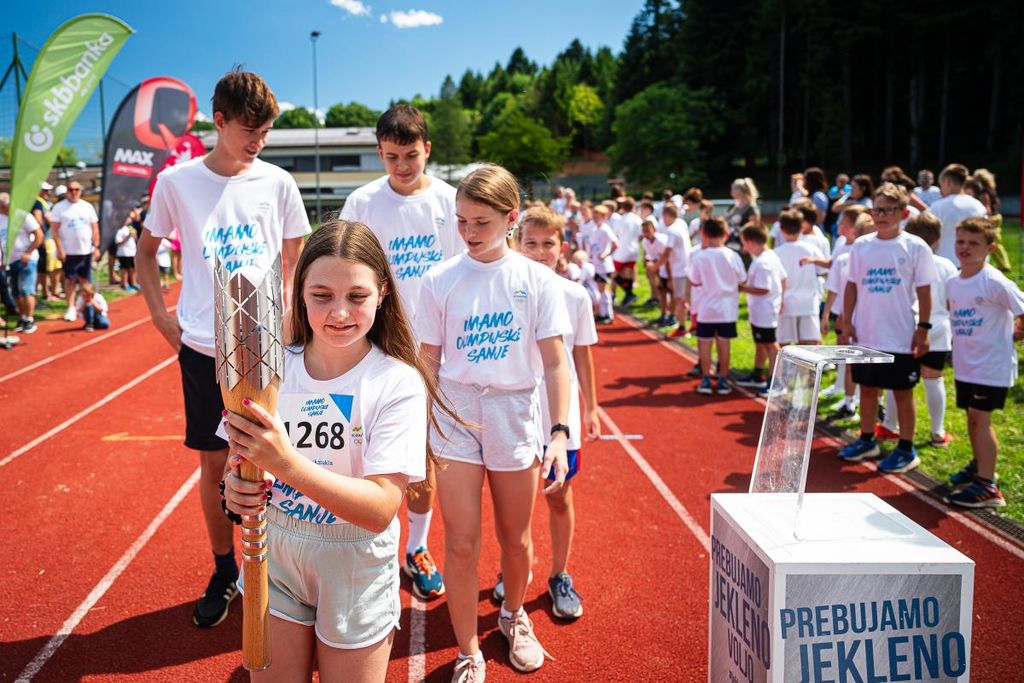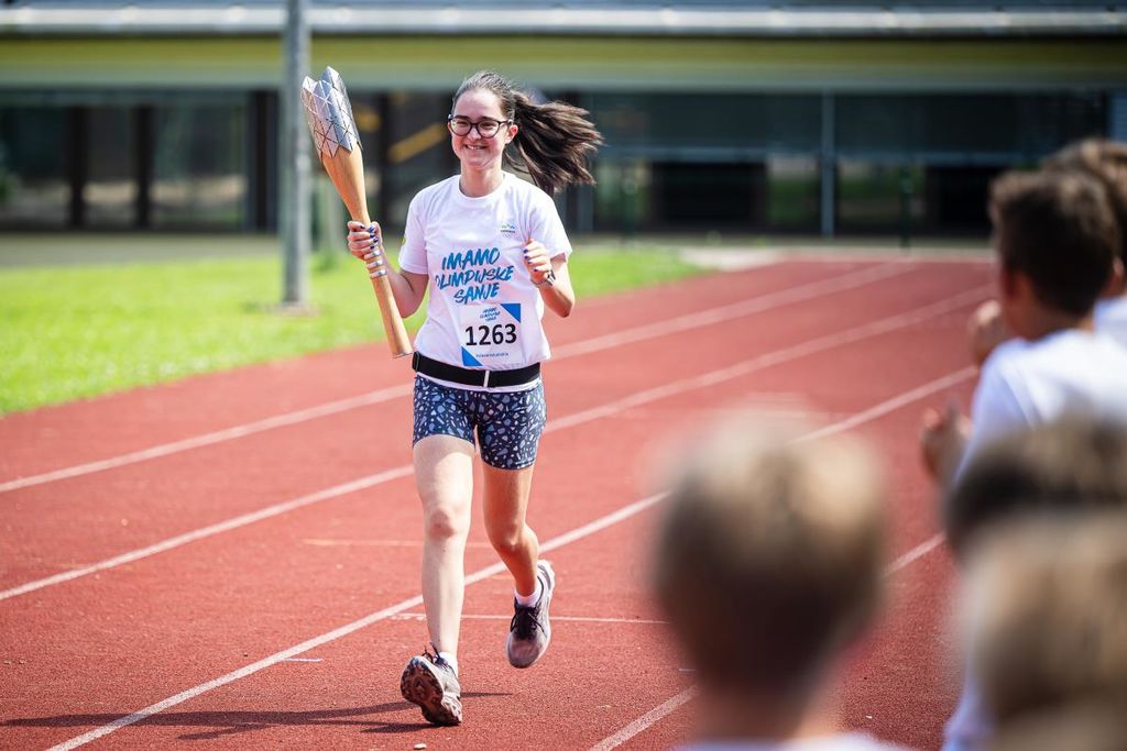 V Dolenjskih Toplicah smo se zbrali na športnem igrišču, kjer sta kuliso ustvarila tekaški krog in mirna okolica gozda. Na tekaškem stadionu je špalir mladih športnih navdušencev in športnikov pričakal baklo in tudi vse nosilce.