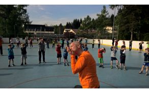 Prvi dan po prvomajskih počitnicah … Težko jutranje bujenje. Vsak bi rad še malo podaljšal sončne počitniške dni. Vendar smo našli rešitev, kako predramiti naše telo, naše možgane in zbujeno začeti še zadnji del šolskega leta. Na obisk sem povabila Dušana Peterlina in Šolo zdravja, ki se s svojimi člani redno srečuje na vsakodnevni jutranji telovadbi (razen nedelj in praznikov) na ploščadi pred nekdanjo gostilno Rog. Že prvo šolsko uro sta nas na hokejskem igrišču pozdravila jutranje sonce in razgibavanje. Od glave do nog za boljše zdravje in lažje razmišljanje smo se sprva malo zadržano in presenečeno, nato pa sproščeno razmigali učenci razredne stopnje.