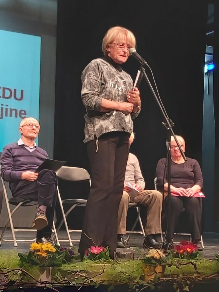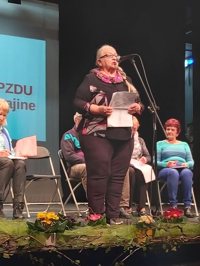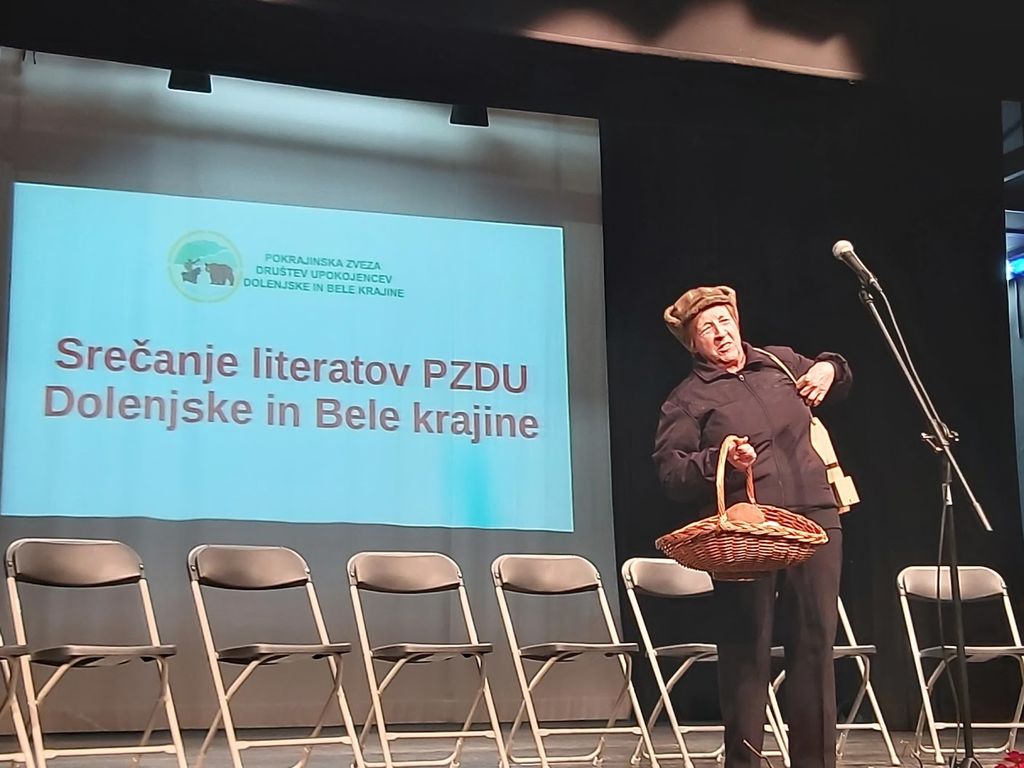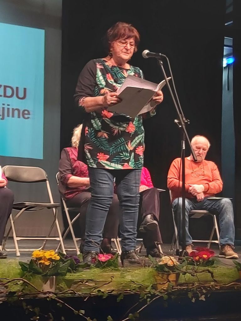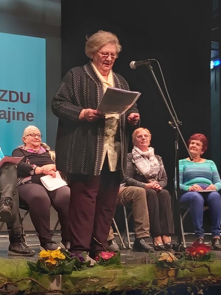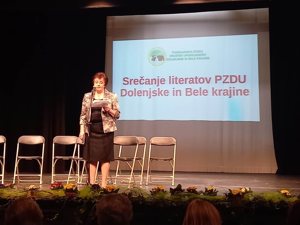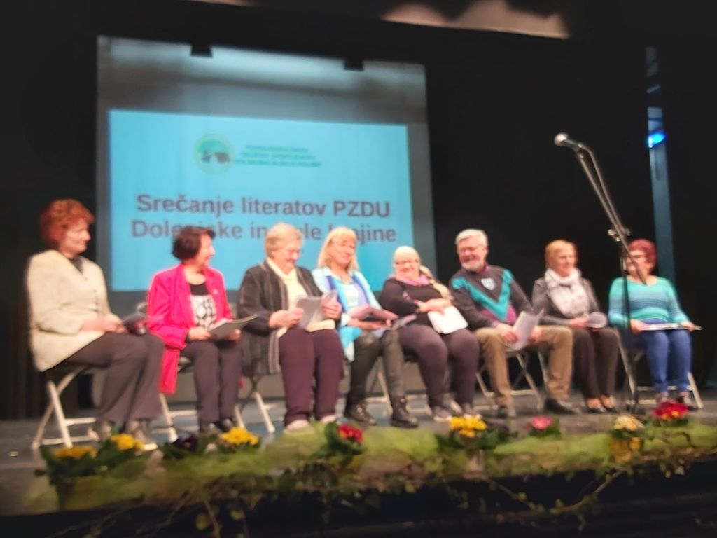 Društvo upokojencev Dolenjske Toplice smo zastopali: Marija Tomažin s pesmijo Jezik, Anton Aš s pesmijo Dolenjske Toplice, Minka Pečaver Potočnik s pesmijo Kamen in Marinka Primožič s pesmijo Mati.