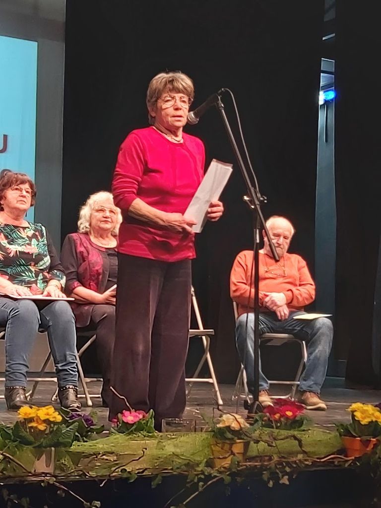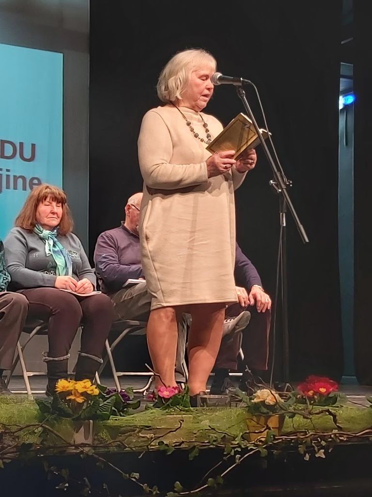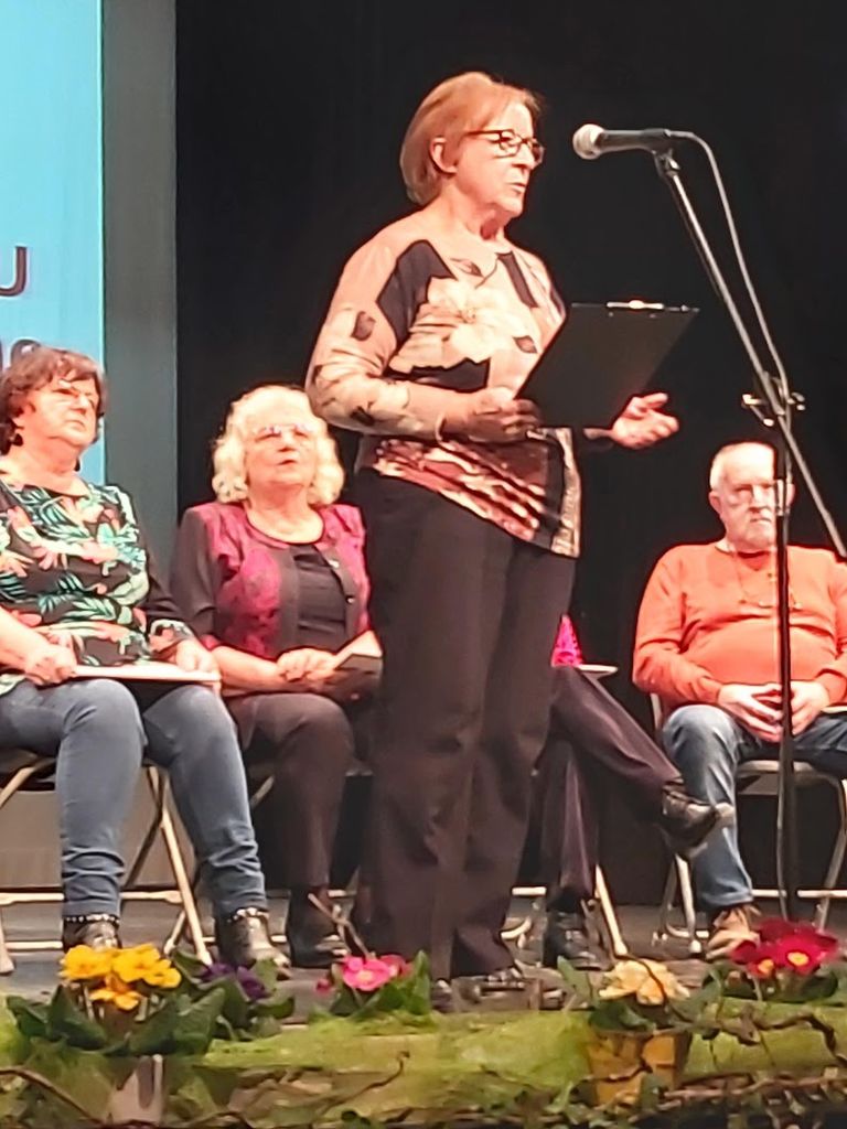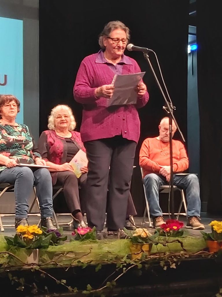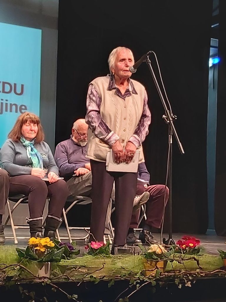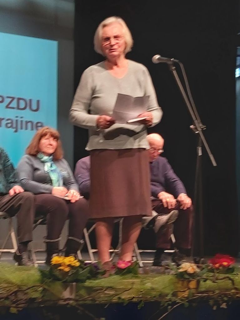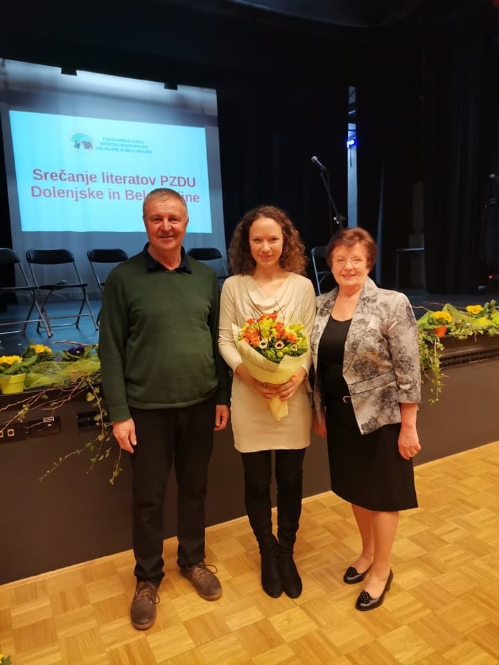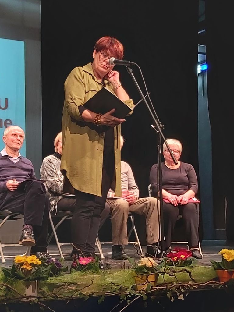 Društvo upokojencev Dolenjske Toplice smo zastopali: Marija Tomažin s pesmijo Jezik, Anton Aš s pesmijo Dolenjske Toplice, Minka Pečaver Potočnik s pesmijo Kamen in Marinka Primožič s pesmijo Mati.