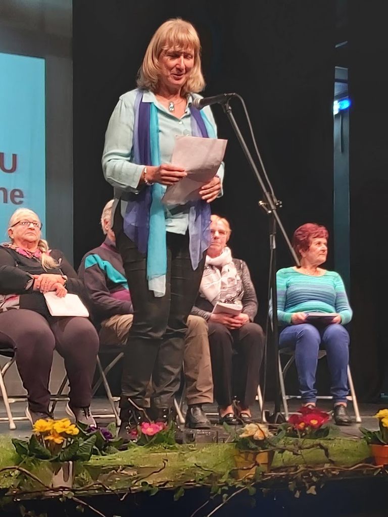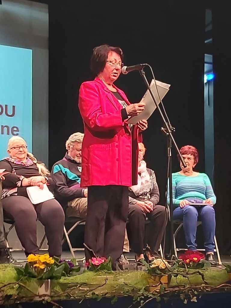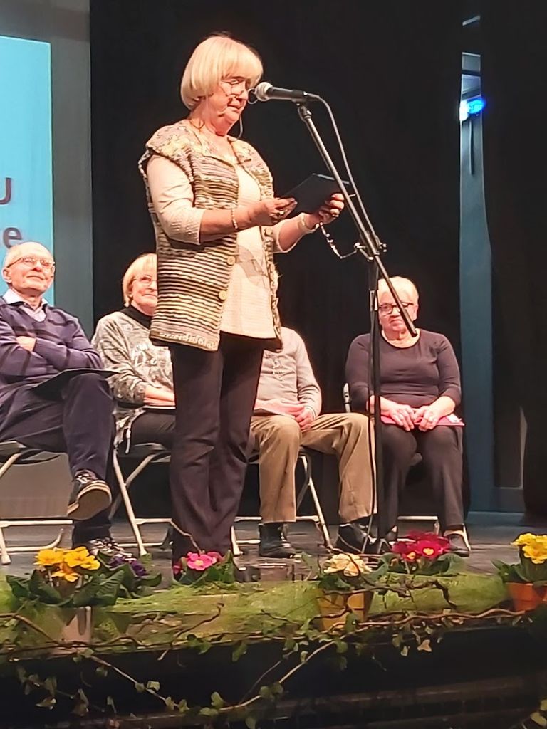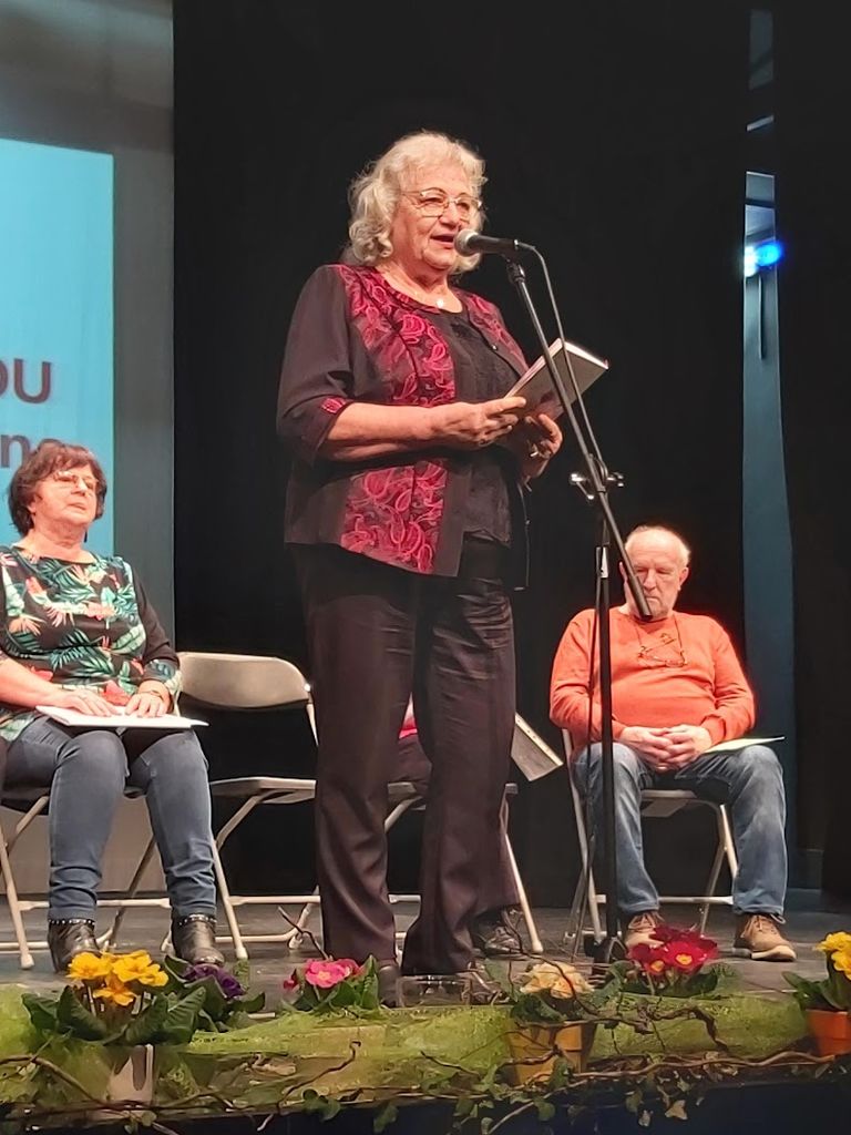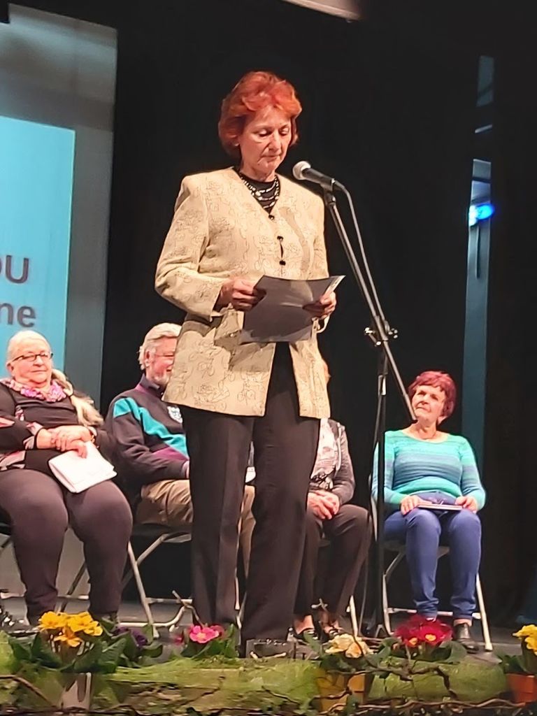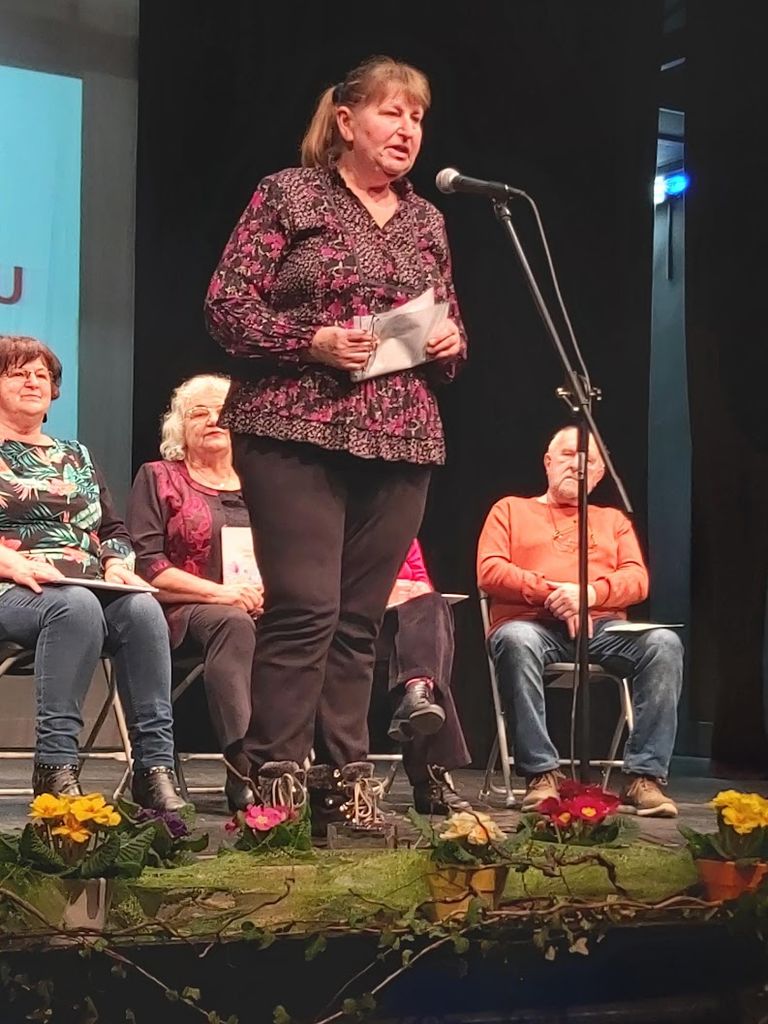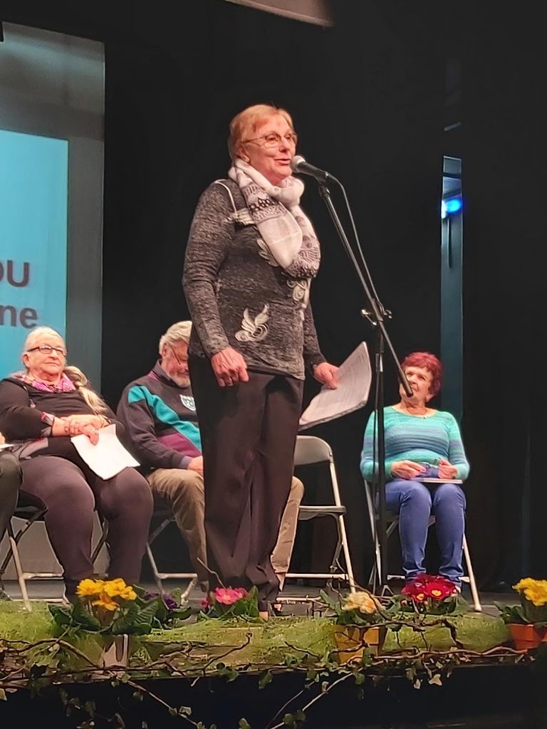 Društvo upokojencev Dolenjske Toplice smo zastopali: Marija Tomažin s pesmijo Jezik, Anton Aš s pesmijo Dolenjske Toplice, Minka Pečaver Potočnik s pesmijo Kamen in Marinka Primožič s pesmijo Mati.