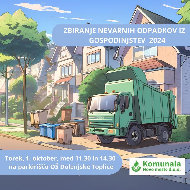 Izvajalec Komunala Novo mesto d.o.o. sporoča urnik zbiranja nevarnih odpadkov iz gospodinjstev za leto 2024.