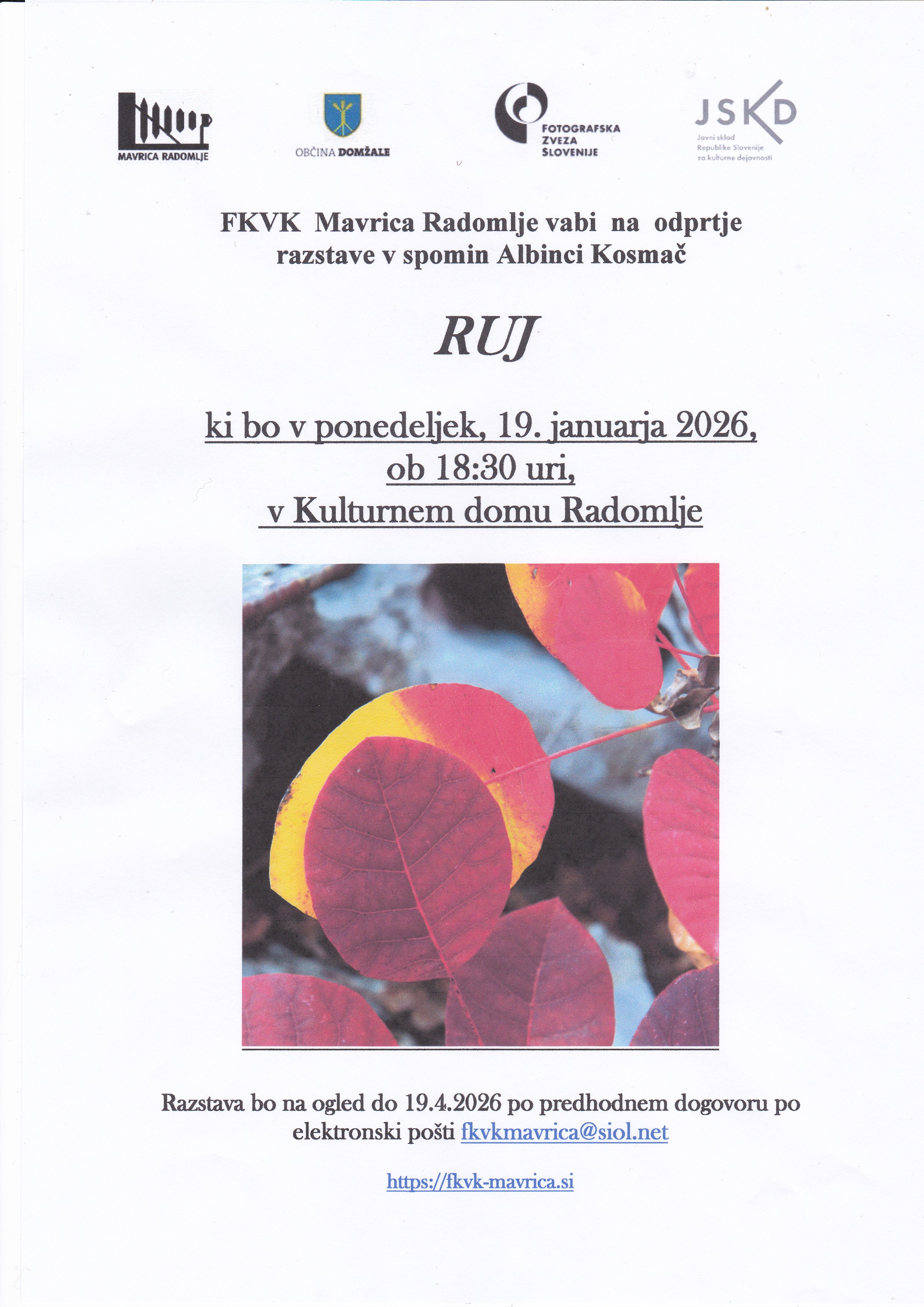 Organizator: KULTURNO DRUŠTVO FOTO KINO IN VIDEO KLUB MAVRICA RADOMLJE