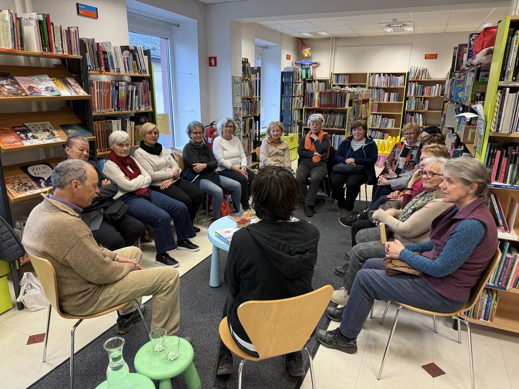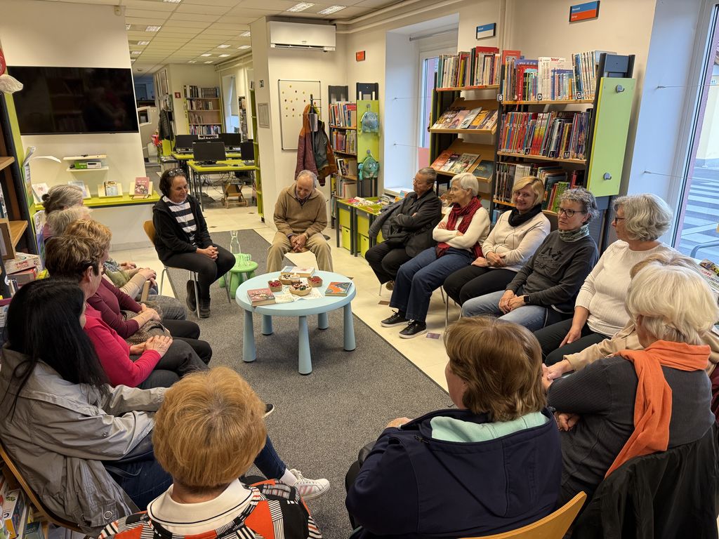 Skupini zvestih in marljivih bralk, ki se ob dobri knjigi mesečno srečujejo v mengeški knjižnici, sta na povabilo Založbe Miš v goste prišla pisatelj Igor Karlovšek in njegova žena Marija. Kulturni dogodek je bil odprt za vse, zato se je število udeleženk povečalo še za nekaj zunanjih obiskovalk, dobrih poznavalk pisateljevih del.