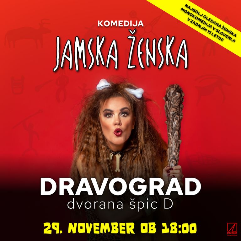 Po izjemnem uspehu predstave Jamski človek zdaj na slovenskih odrih navdušuje še komedija Jamska ženska, avtorice Emme Peirson. V glavni vlogi blesti Rebeka Dremelj, ki s svojo predstavo osvaja občinstvo. Pod režijsko taktirko Ranka Babića, ki ga poznamo po hit komedijah Moška copata in Kriza srednjih let, predstava še naprej razveseljuje gledalce po vsej Sloveniji.