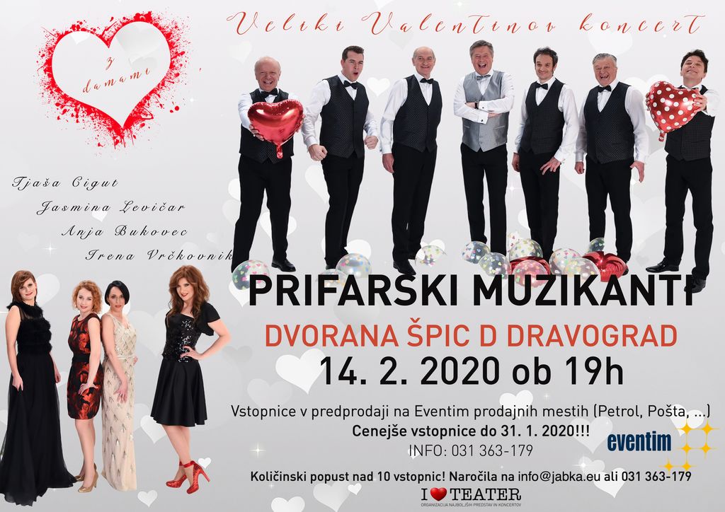 Veliki Valentinov koncert najlepših ljubezenskih pesmi, seveda po izboru Prifarcev. Tudi zato se bodo na koncertu slišale slovenske ljudske pesmi, popevke, ljudske pesmi drugih narodov in zimzelene svetovne uspešnice.