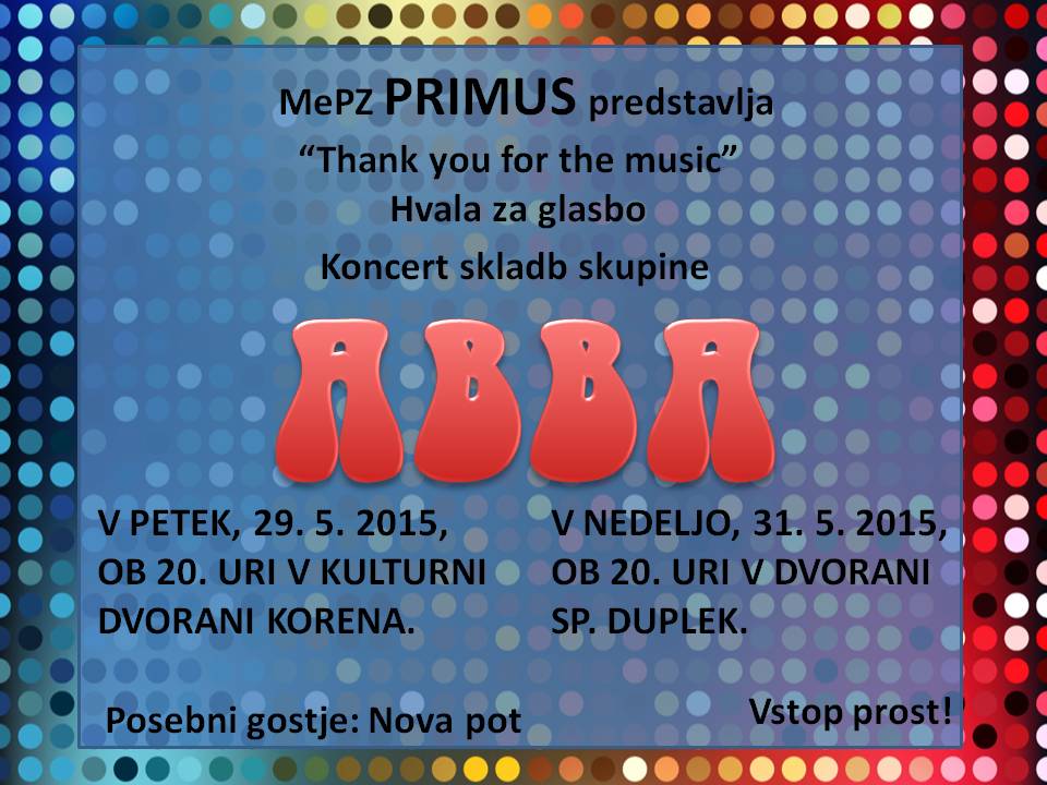 priredb pesmi legendarne skupine ABBA: "THANK YOU FOR THE MUSIC - HVALA ZA GLASBO".