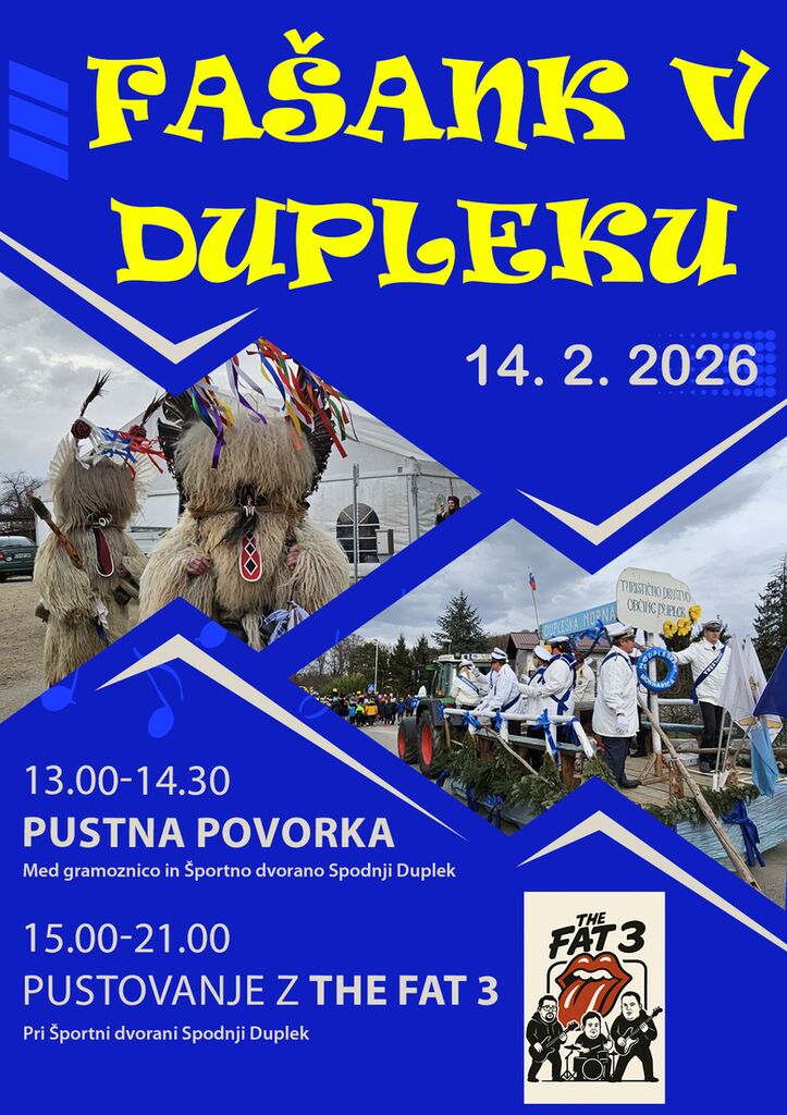 V soboto, 14. 2. 2026, bo v Dupleku znova veselo in pisano – pripravljamo pustno povorko ter pustovanje. Vabimo vas, da se povorke udeležite s svojo skupino, društvom, razredom, vrtčevsko skupino ali družino ter s tem soustvarite pravo pustno vzdušje v naši občini.
