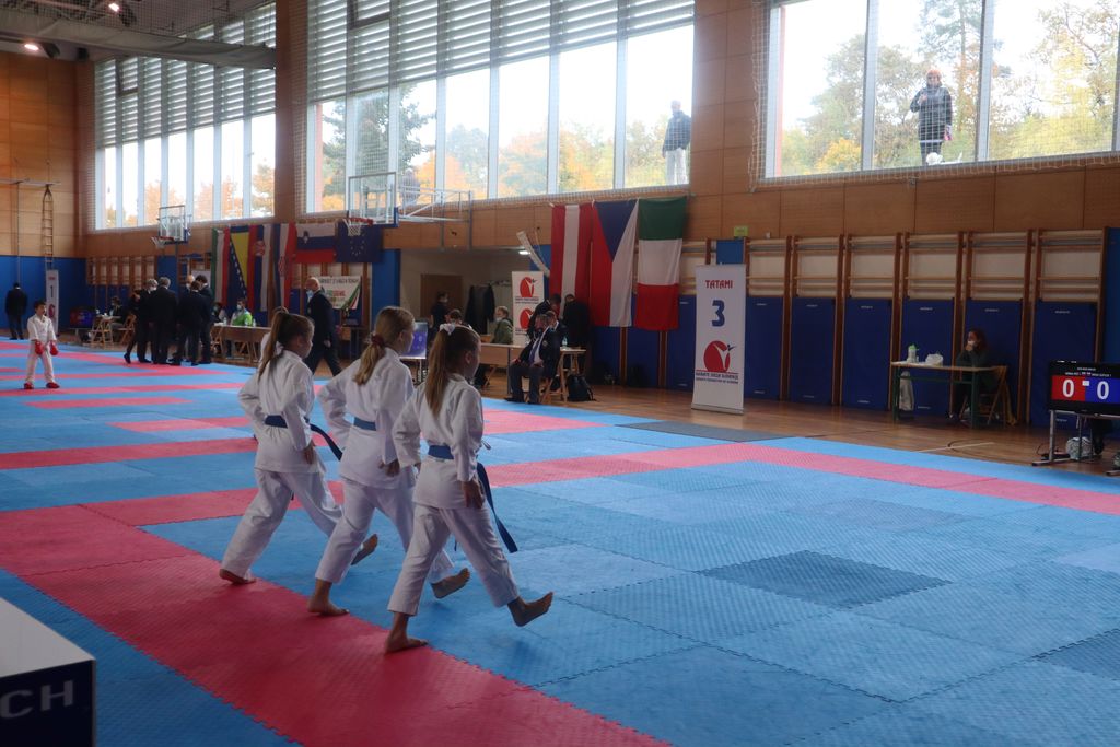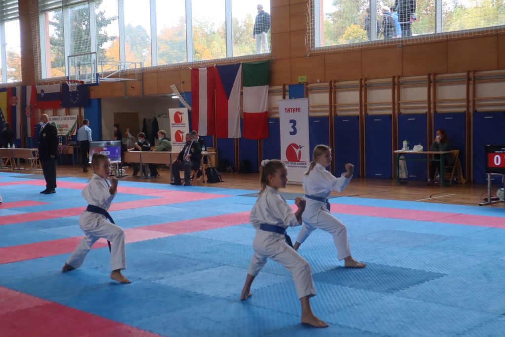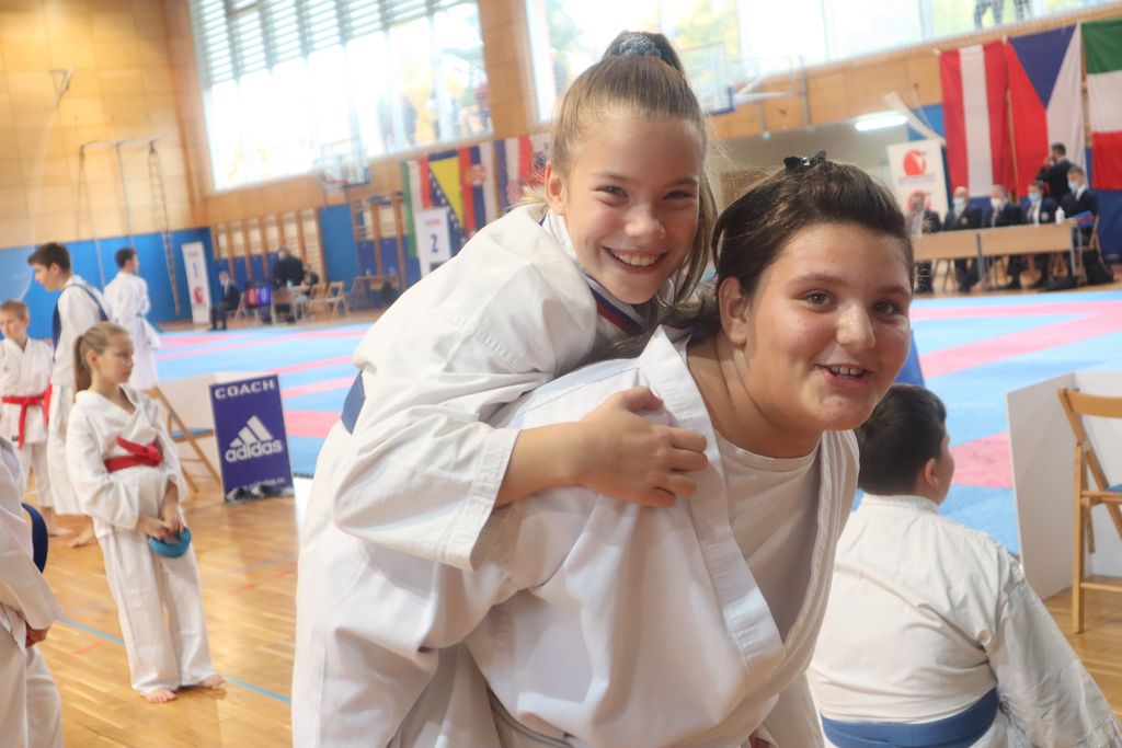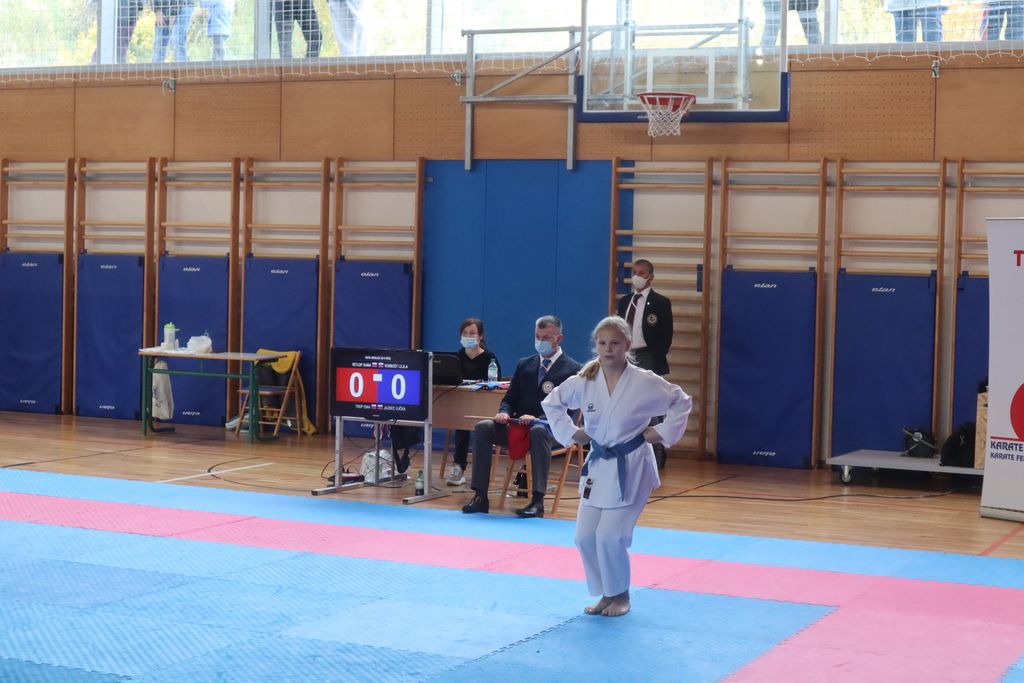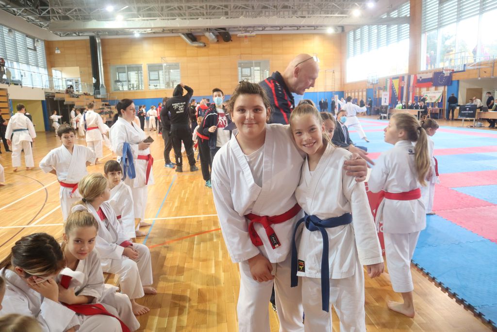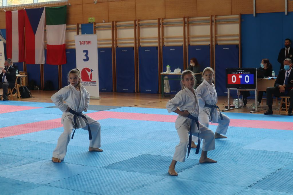 Tokrat Vas obveščamo o novem uspehu naših karateistov oz. natančneje karateistk. V Mariboru je 23. Oktobra 2021 se organiziralo tradicionalno mednarodno tekmovanje Maribor open 2021. Tokrat smo se tekmovanja udeležili s tremi mlajšimi dekleti, saj nas je Covid kar precej ohromil. Naša dekleta Gaja in Tjaša Rojs, ter Lejla Verbošt so predstavljala naš klub v katah posamezno in ekipno. Tekmovanje kjer je nastopilo 49 klubov iz 7ih držav je bilo še toliko težje, saj naša dekleta še niso nastopila na tako kvalitetnem tekmovanju z toliko tekmovalci. Posamezno sta najprej nastopili Gaja in Tjaša. Tjaša je v prvem krogu kljub dobremu nastopu klonila proti tekmovalki iz gostujočega kluba, ki je bila za en sodniški glas boljša od nje. Medtem je Gaja suvereno zmagovala in na koncu v repasažu zasluženo dosegla 3. mesto. Medtem je bilo podobno z Lejlo Verbošt, ki ji je znova žreb določil večno rivalko Saro Ritlop iz Murske Sobote, ki je bila na koncu druga. Poraz proti njej in njena nadaljnja zmaga ji je omogočila repasaž, ki pa ga je podobno kot Tjaša izgubila za en sodniški glas. Za temi nastopi smo imeli precej časa, da se pripravimo na ekipne nastope, kjer so dekleta prav zasijala. Toliko skladnosti in želje še niso pokazala. Njihova skupna energija, ki je bila neverjetna je prepričevala sodnike nastop za nastopom. Največji izziv je bilo premagati nasprotnice v finalu, saj so nastopile odlične tekmovalke iz Mirne peči. V samem finalu so se še posebej potrudile in odlično izvedle skupinsko kato, ter postale prvakinje.
