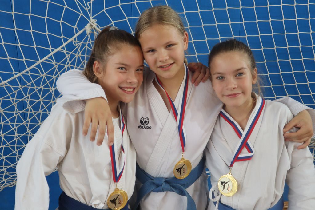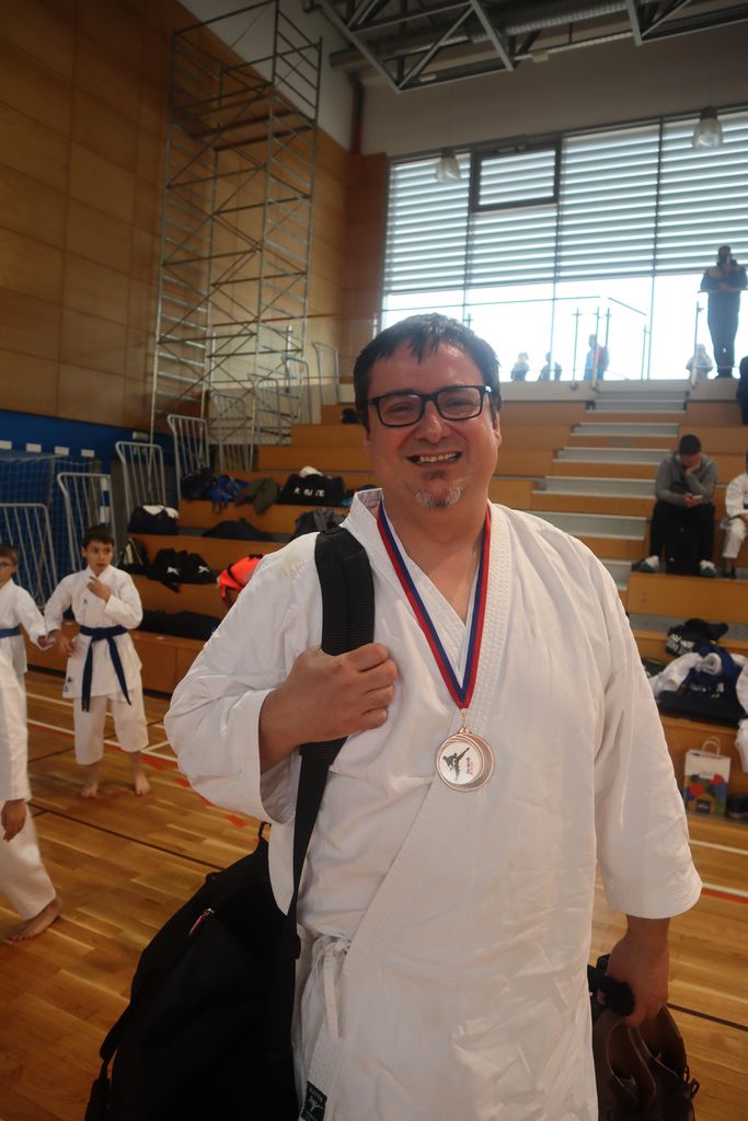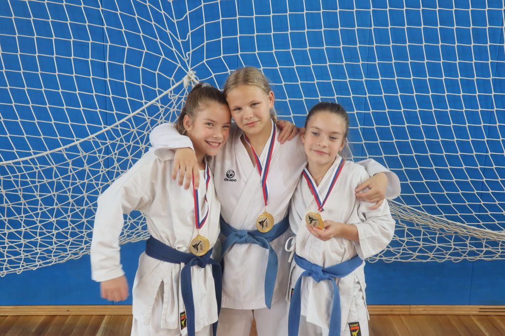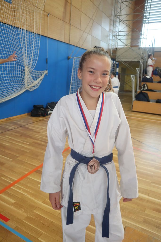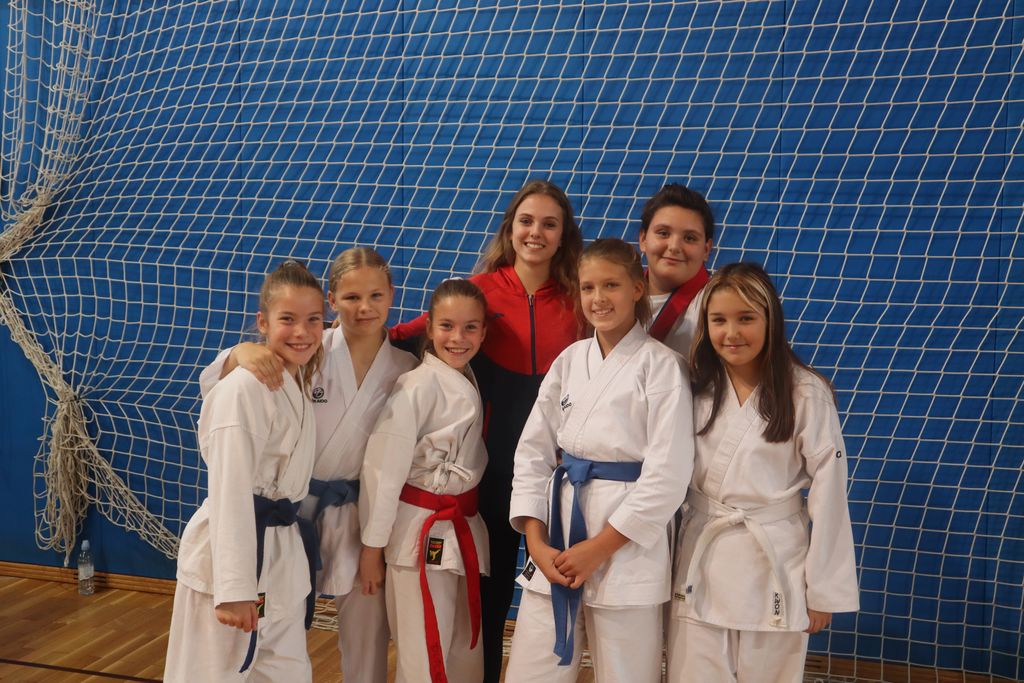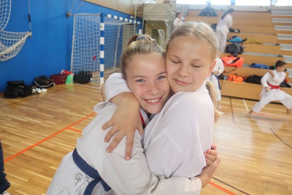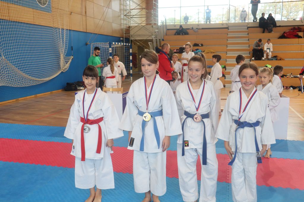 Tokrat Vas obveščamo o novem uspehu naših karateistov oz. natančneje karateistk. V Mariboru je 23. Oktobra 2021 se organiziralo tradicionalno mednarodno tekmovanje Maribor open 2021. Tokrat smo se tekmovanja udeležili s tremi mlajšimi dekleti, saj nas je Covid kar precej ohromil. Naša dekleta Gaja in Tjaša Rojs, ter Lejla Verbošt so predstavljala naš klub v katah posamezno in ekipno. Tekmovanje kjer je nastopilo 49 klubov iz 7ih držav je bilo še toliko težje, saj naša dekleta še niso nastopila na tako kvalitetnem tekmovanju z toliko tekmovalci. Posamezno sta najprej nastopili Gaja in Tjaša. Tjaša je v prvem krogu kljub dobremu nastopu klonila proti tekmovalki iz gostujočega kluba, ki je bila za en sodniški glas boljša od nje. Medtem je Gaja suvereno zmagovala in na koncu v repasažu zasluženo dosegla 3. mesto. Medtem je bilo podobno z Lejlo Verbošt, ki ji je znova žreb določil večno rivalko Saro Ritlop iz Murske Sobote, ki je bila na koncu druga. Poraz proti njej in njena nadaljnja zmaga ji je omogočila repasaž, ki pa ga je podobno kot Tjaša izgubila za en sodniški glas. Za temi nastopi smo imeli precej časa, da se pripravimo na ekipne nastope, kjer so dekleta prav zasijala. Toliko skladnosti in želje še niso pokazala. Njihova skupna energija, ki je bila neverjetna je prepričevala sodnike nastop za nastopom. Največji izziv je bilo premagati nasprotnice v finalu, saj so nastopile odlične tekmovalke iz Mirne peči. V samem finalu so se še posebej potrudile in odlično izvedle skupinsko kato, ter postale prvakinje.