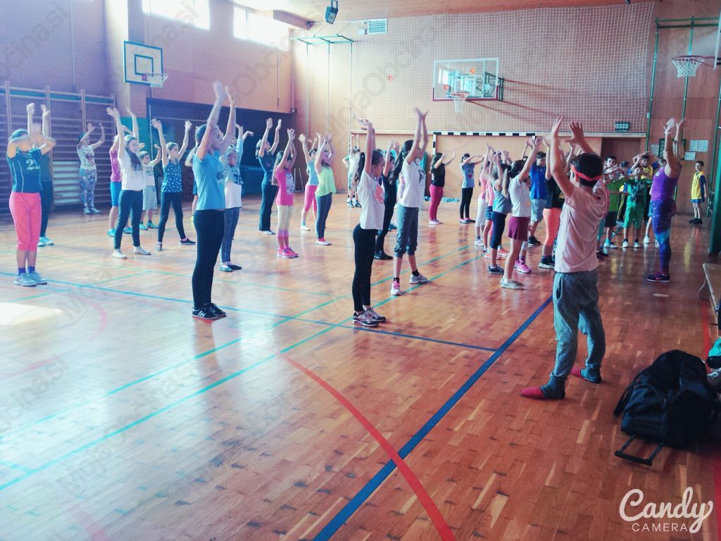 Z gibanjem smo danes dopoldne pričeli v Osnovni šoli Korena z zumbo za otroke.