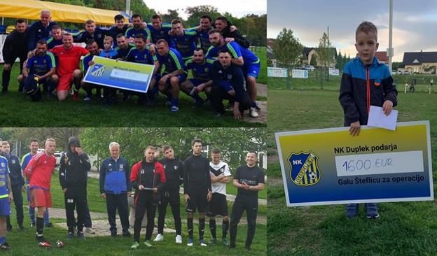 Ob lepi zmagi, pa smo se skupaj veselili tudi predaje zbranega denarja za našega sokrajana Šteflič Gala, ki bo v primeru dovolj zbranih sredstev, lahko odšel na potrebno operacijo rok. Denar za Gala je zbrala ekipa NK Duplek, prav tako so veliko prispevali obiskovalci, na sami tekmi. Posebej veseli smo bili, da se je akciji pridružila tudi ekipa NK Peca in tako zbranim sredstvom dodala še svoj delež.