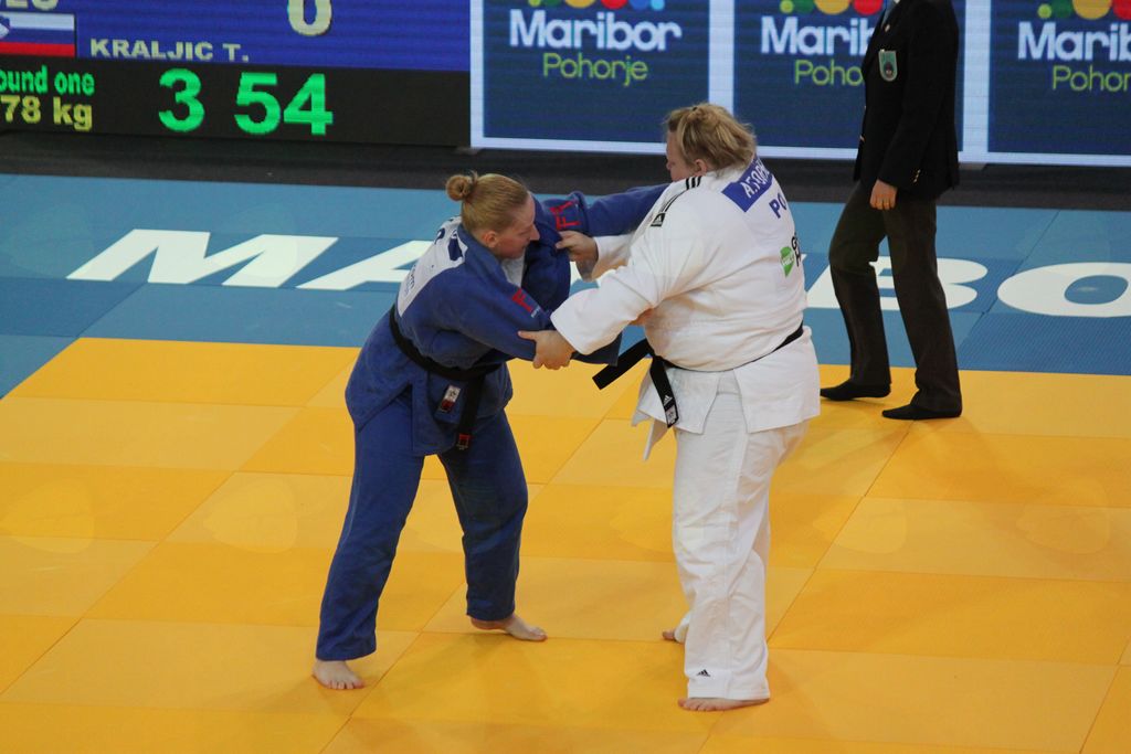 V soboto so na blazine stopile višje kategorije . JK Duplek je v reprezentanci zastopala Tamara Kraljić . Žreb ji je dodelil Poljakinjo Anito Formela katera je bila od Tamare težja skoraj za dva krat. Tako da Tamara ni imela nobenih možnostih za preboj v naslednjo kolo.