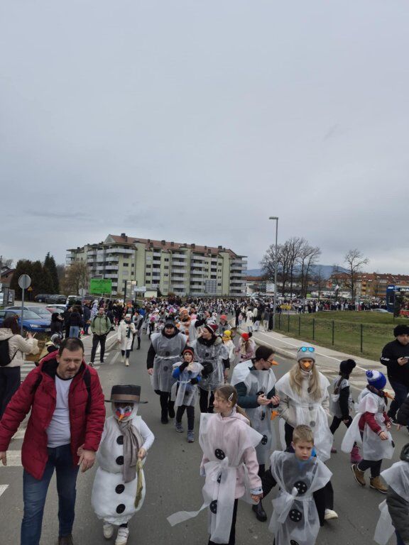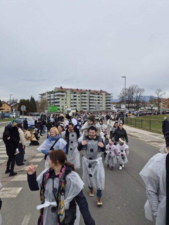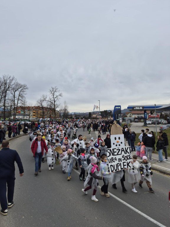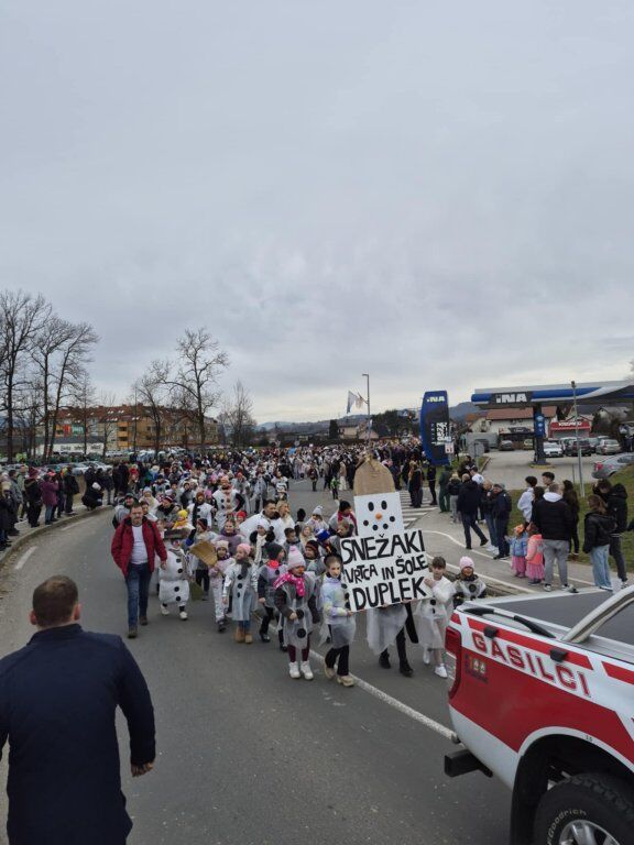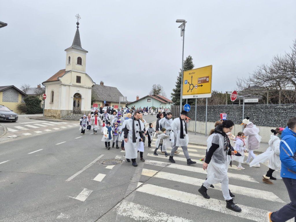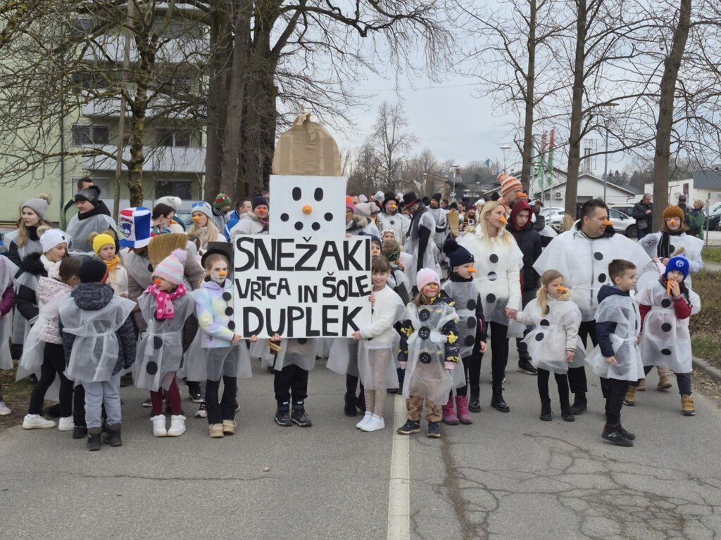 Letošnja skupna maska je bila SNEŽAKI. Bele kape, šali, korenčki, nasmejani obrazi in ustvarjalni dodatki so povorko spremenili v pravo zimsko pravljico. Otroci so z navdušenjem ponosno predstavljali svoje maske, starši pa so s sodelovanjem pokazali, kako pomembno je skupno ustvarjanje in ohranjanje tradicije.