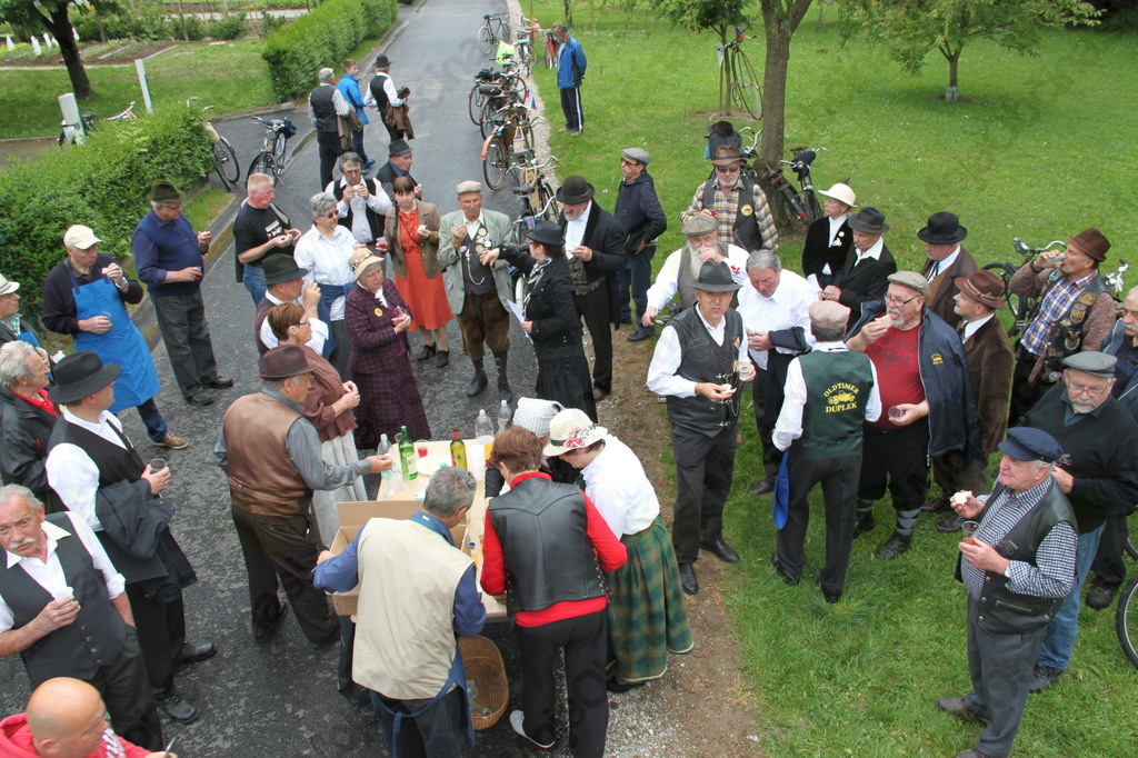 Kar 46 kolesarjev s svojimi starodobnimi kolesi se je veselo odpravilo na potep po občini Duplek. Najstarejše kolo datira iz leta 1900, ponosni lastnik pa je član Društva ROVTAR Škofja Loka. Res smo bili prava paša za oči, oblečeni v oblačila približne letnice koles in dobre volje.