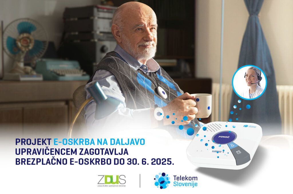 Ljubljana, 3. oktobra – Ministrstvo za solidarno prihodnost je Telekom Slovenije skupaj z Zvezo društev upokojencev Slovenije (ZDUS) v okviru javnega razpisa »E-oskrba na daljavo« izbralo za izvajalca storitve E-oskrba. To pomeni, da je E-oskrba za najmanj 5.500 upravičencev od 1. oktobra letos do 30. junija 2025, to je do uveljavitve pravice do e-oskrbe iz Zakona o dolgotrajni oskrbi, ki področje sistemsko ureja, še naprej na voljo brezplačno.