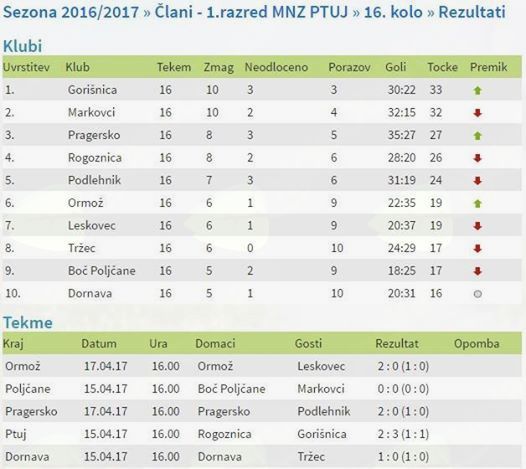 Naslednjo tekmo naša ekipa igra v nedeljo 23.4. ob 16:00 doma v Gorišnici - proti ekipi NK Pragersko, katera v spomladanskem delu prventva niza dobre predstave in so celo na tretjem mestu na lestvici.