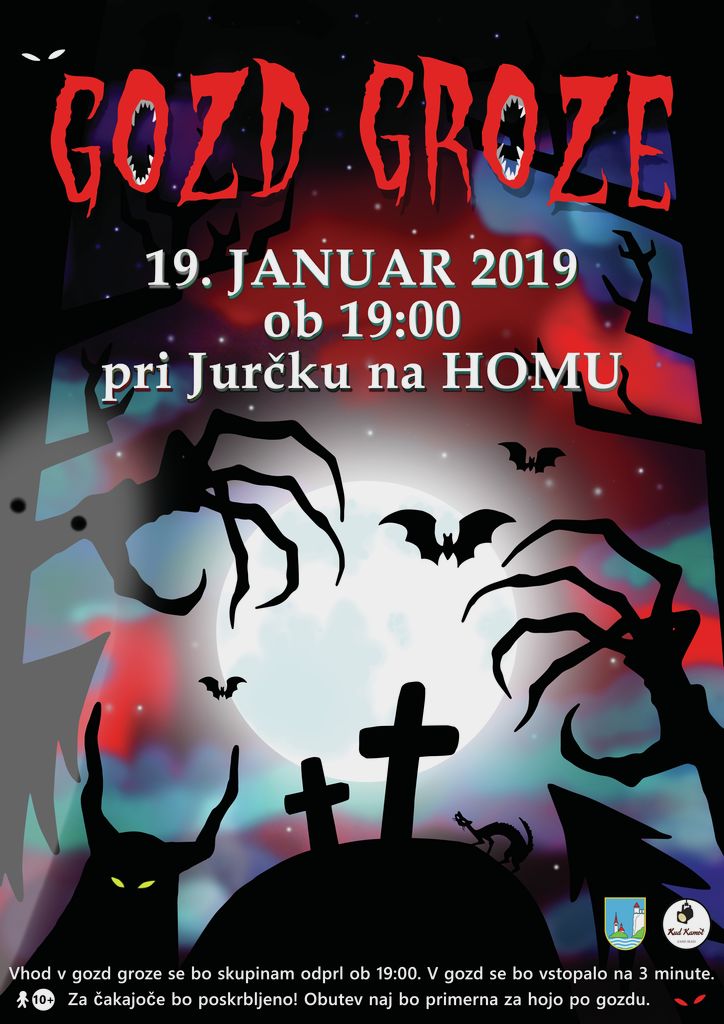 V soboto, 19. januarja, ob 19.00 bomo razgrnili veje v Gozdu groze, ki stoji pod Homom in enkrat za vselej poiskali odgovore na vprašanja, kdo in kaj v poznih urah hruli v nočno nebo in straši mimoidoče.