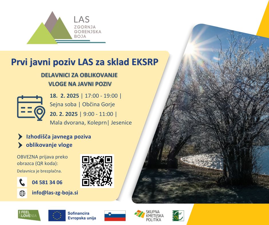 LAS Zgornja Gorenjska – BOJA je 10. februarja 2025 objavil Prvi javni poziv za Evropski sklad za kmetijstvo in razvoj podeželja (EKSRP).