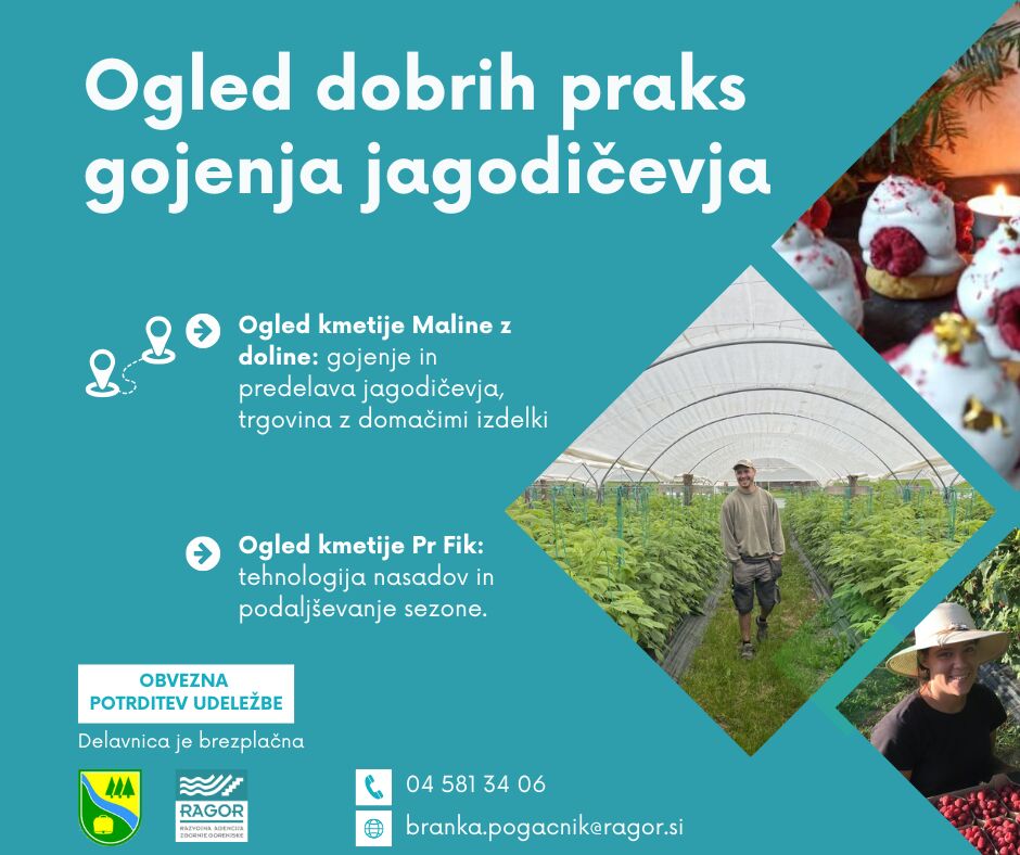 - Kmetija Maline z doline, Poljane nad Škofjo Loko – prikaz obiranja in degustacija različnih sort jagodičevja ter domačih izdelkov (marmelade, sirupi, liker, liofilizirano jagodičje, sladoled …). Ogledali si bomo tudi trgovinico in predelovalne prostore.