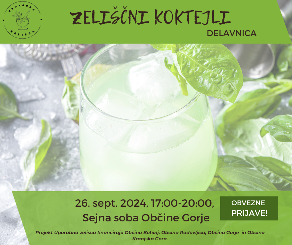 V četrtek, 26.9.2024 bo od 17:00 do 20:00 v Občini Gorje potekala delavnica Zeliščni koktejli.