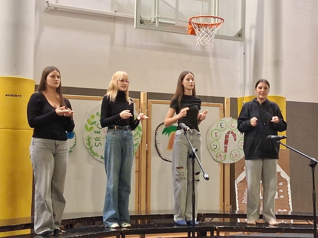 Dogajanje se je začelo s kratko božično-novoletno kulturno prireditvijo v šolski telovadnici. Učenci so obiskovalce popeljali v čarobni svet zgodbe V deželi Hrestača, kjer so se skozi glasbo, ples, petje, dramatizacijo in nastope učencev slovenskega znakovnega jezika prepletali praznični motivi, toplina in iskrena otroška ustvarjalnost.