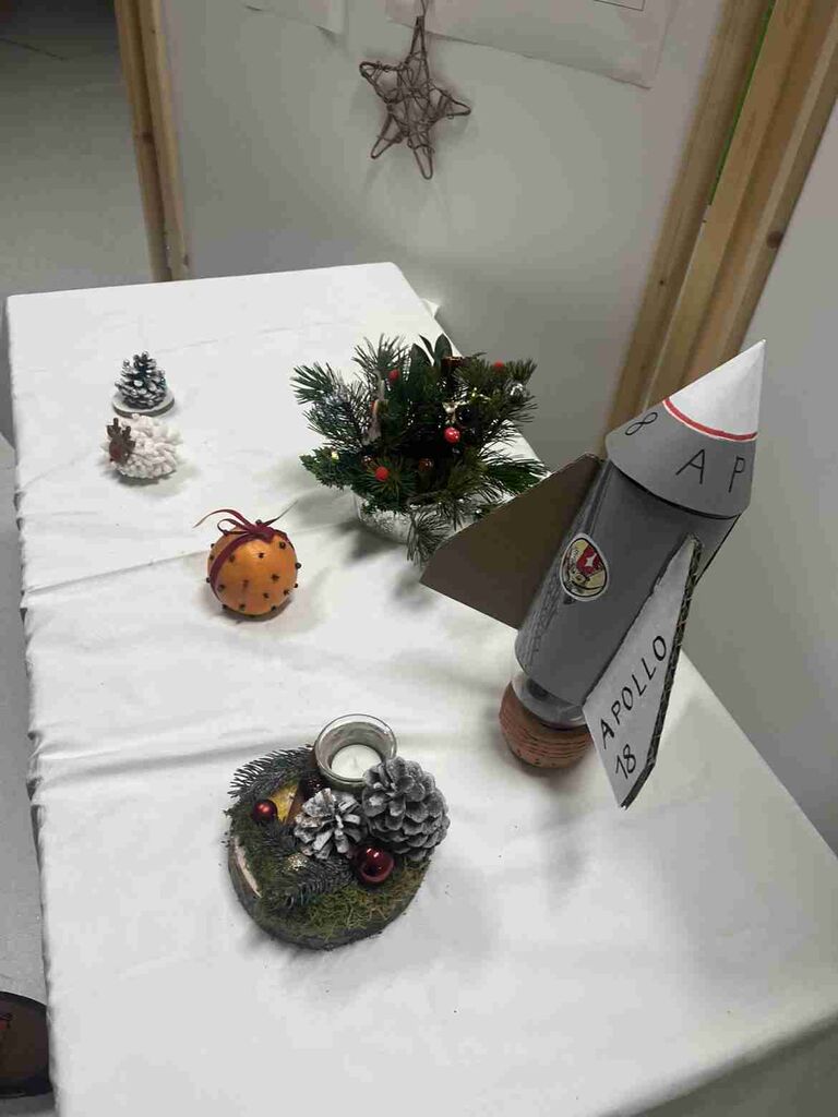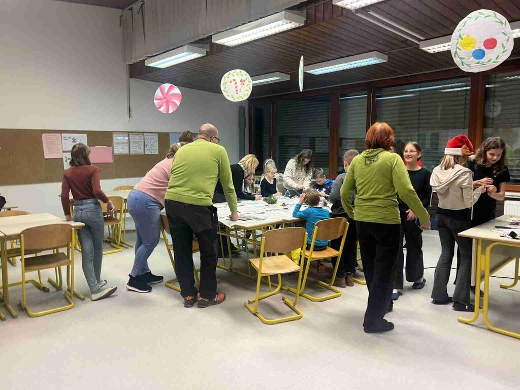 Po kulturnem programu so se starši skupaj z učenci podali po šolskih hodnikih in učilnicah, kjer so potekale raznolike decembrske delavnice. Na njih so nastajali praznični okraski, svečniki, smrečice, leseni izdelki in tudi sadna nabodala ter celo rakete na vodni pogon.