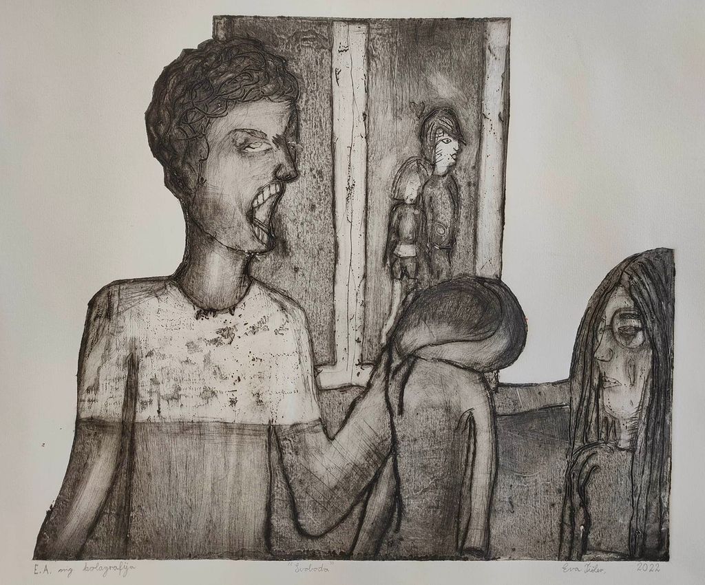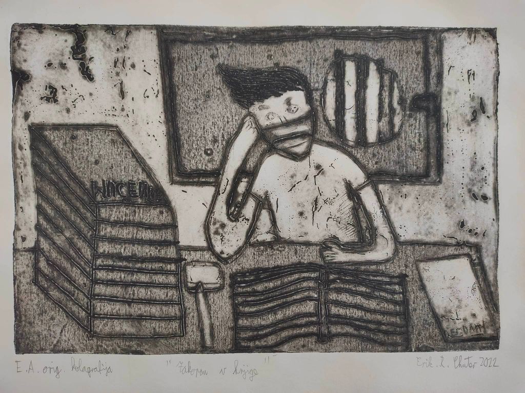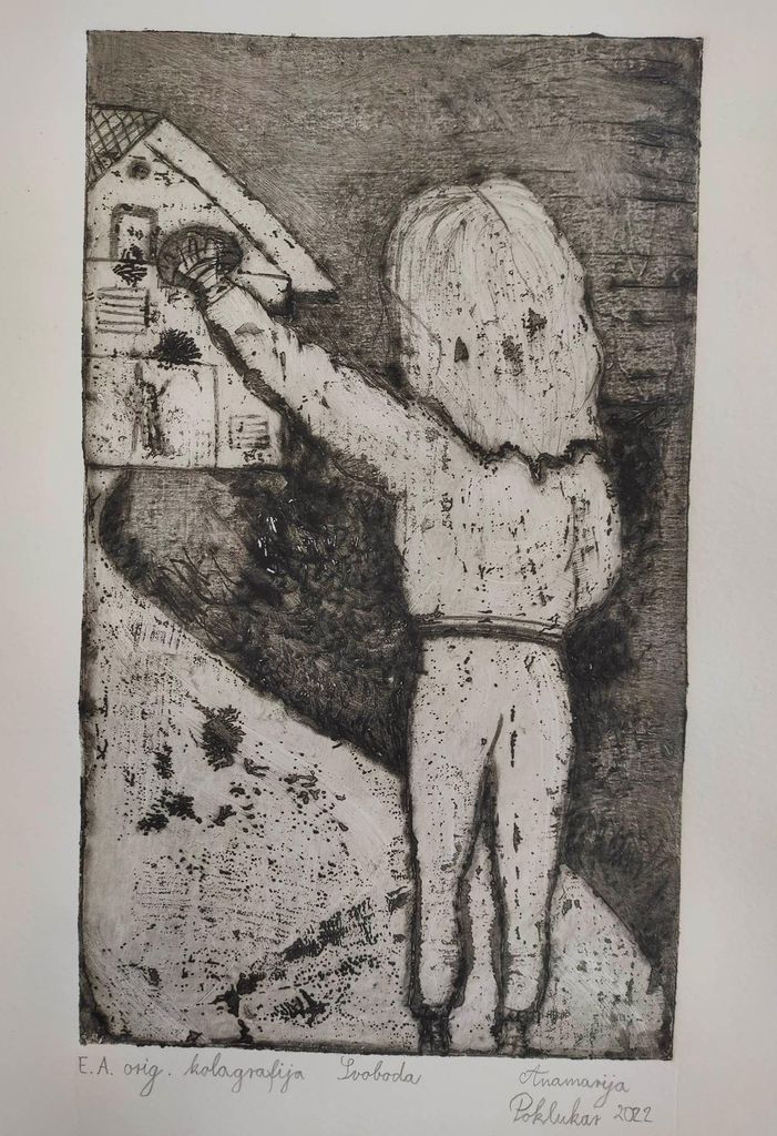 Na natečaju smo sodelovali z osmimi grafičnimi listi, ki smo jih ustvarili pri pouku likovne umetnosti v 8. razredu v tehniki kolagrafije – grafični tehniki globokega tiska.