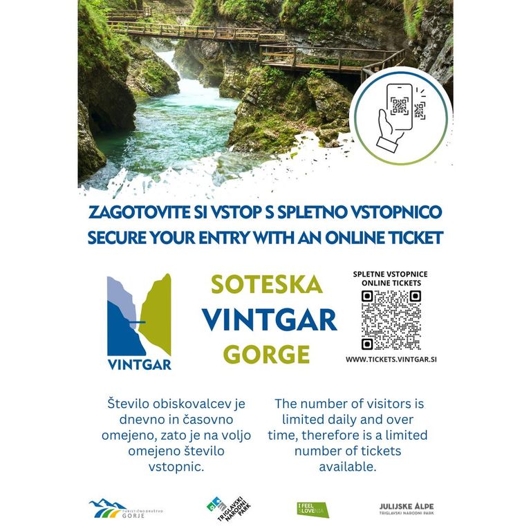 Obisk soteske Vintgar je večurno doživetje, zato je obisk potrebno načrtovati vnaprej. Na spletni strani najdete vse potrebne informacije glede spletne vstopnice, dostopa do soteske in zahtevnosti krožnih poti.