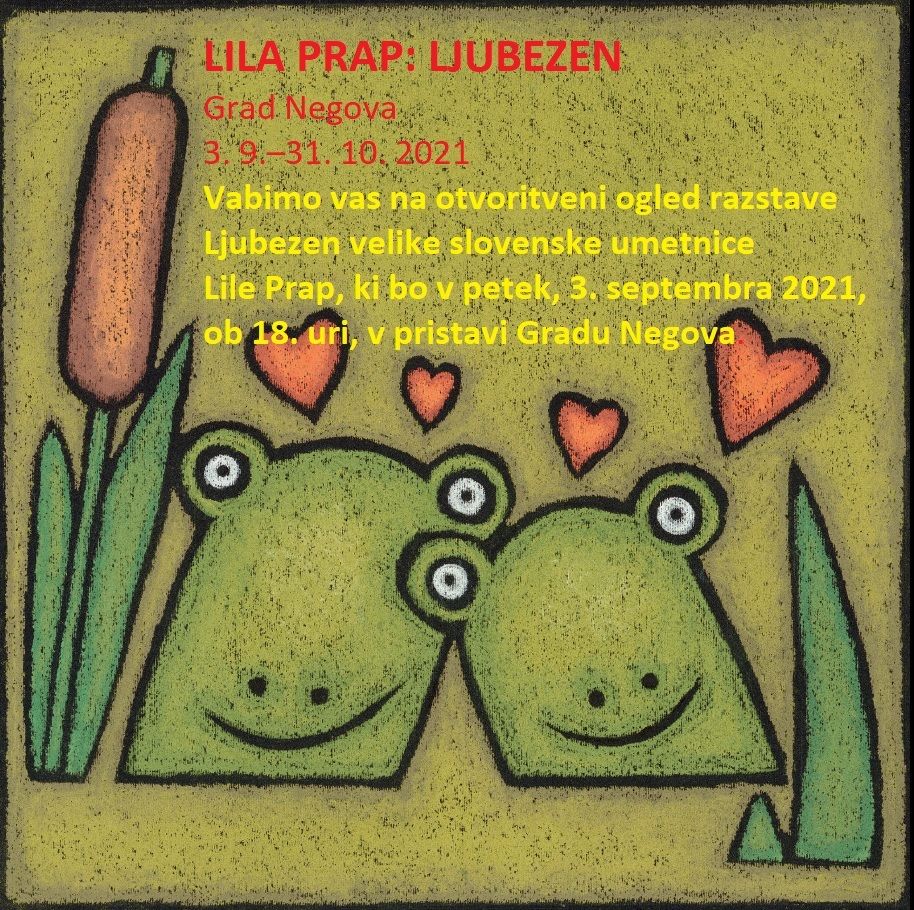 Vabimo vas na ogled razstave LJUBEZEN velike slovenske umetnice Lile Prap, ene naših najbolj nagrajevanih in cenjenih, ne samo ilustratork, ampak tudi pisateljic in pesnic. Razstava v gradu Negova bo odprta do 31.10.2021.