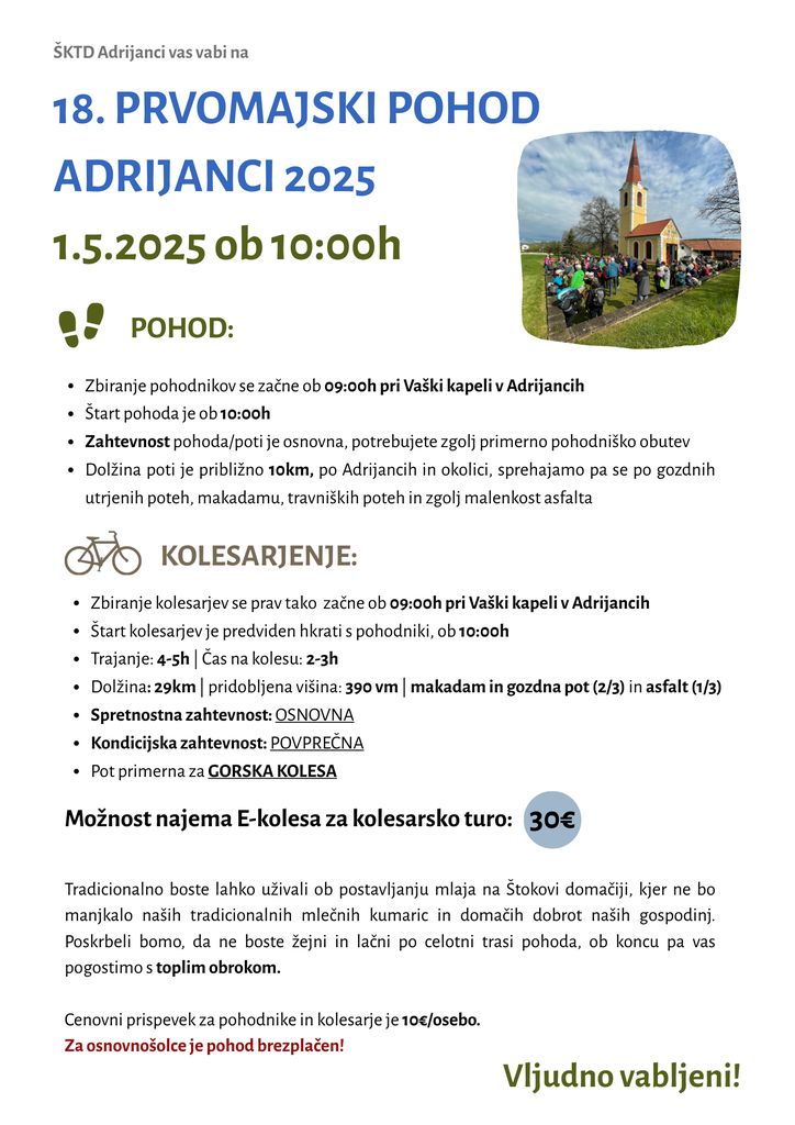 Vljudno vabljeni in vas z veseljem pričakujemo v Adrijancih!