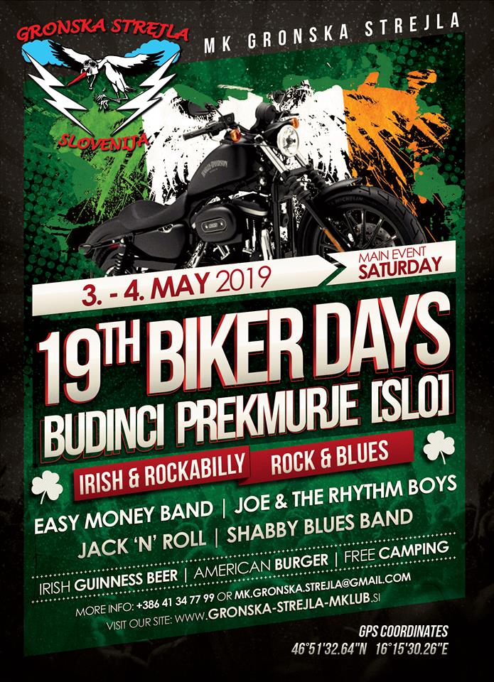 Moto klub GRONSKA STREJLA vas vabi na tradicionalno 19. SREČANJE MOTORISTOV PRI KLUBSKI HIŠI V BUDINCIH, v petek zvečer, 03. maja 2019 in soboto celi dan, 04. maja 2019.
