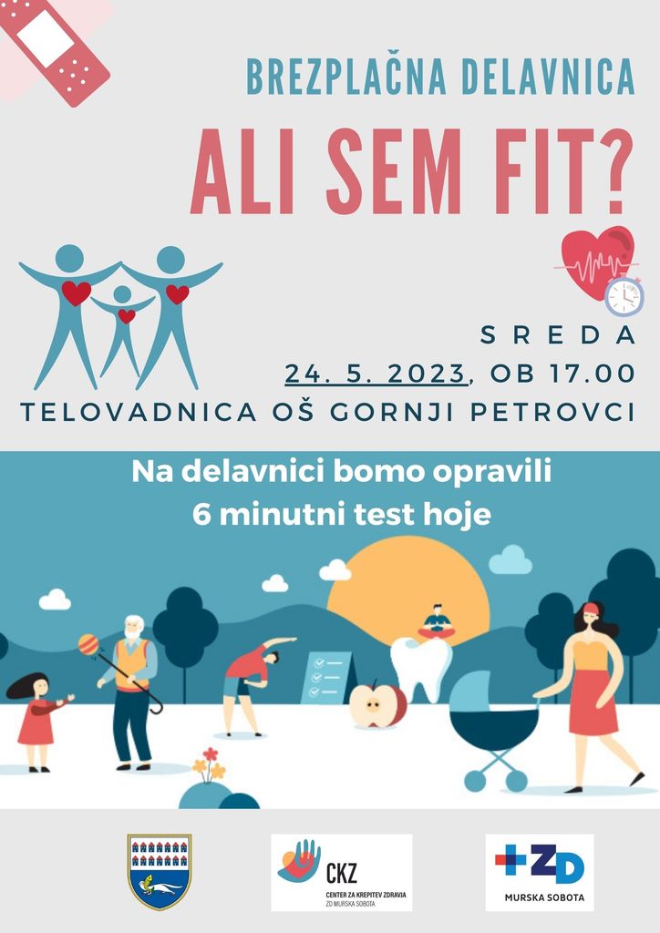 Občina Gornji Petrovci vas v sodelovanju s Centrom za krepitev zdravja – Zdravstveni dom Murska Sobota vabi na delavnico Ali sem fit?, ki bo v sredo, 24. maja 2023, ob 17. uri, v telovadnici OŠ Gornji Petrovci.