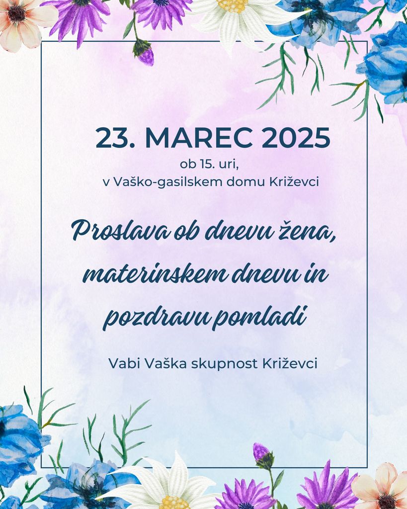 Vaška skupnost Križevci vas vabi na proslavo ob dnevu žena, materinskem dnevu in pozdravu pomladi,