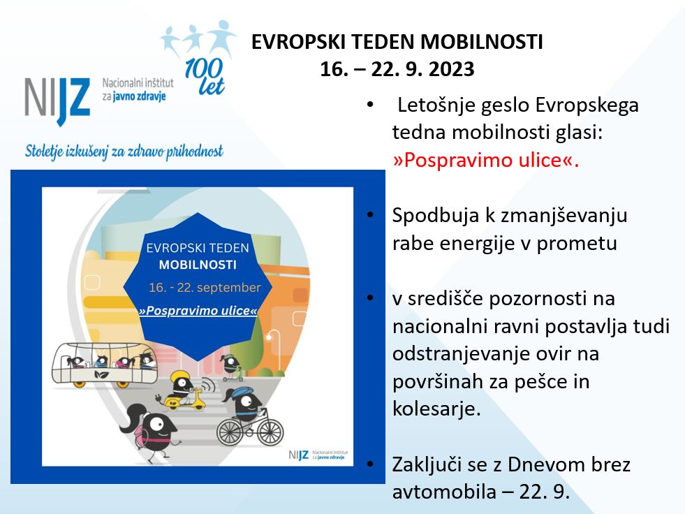 na površinah za pešce in kolesarje, zato se letošnje geslo Evropskega tedna