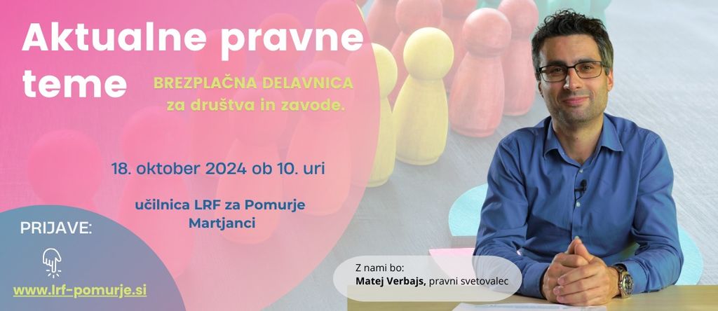 Delavnica bo potekala v petek, 18. oktobra 2024 ob 10. uri v učilnici LRF za Pomurje v Martjancih.