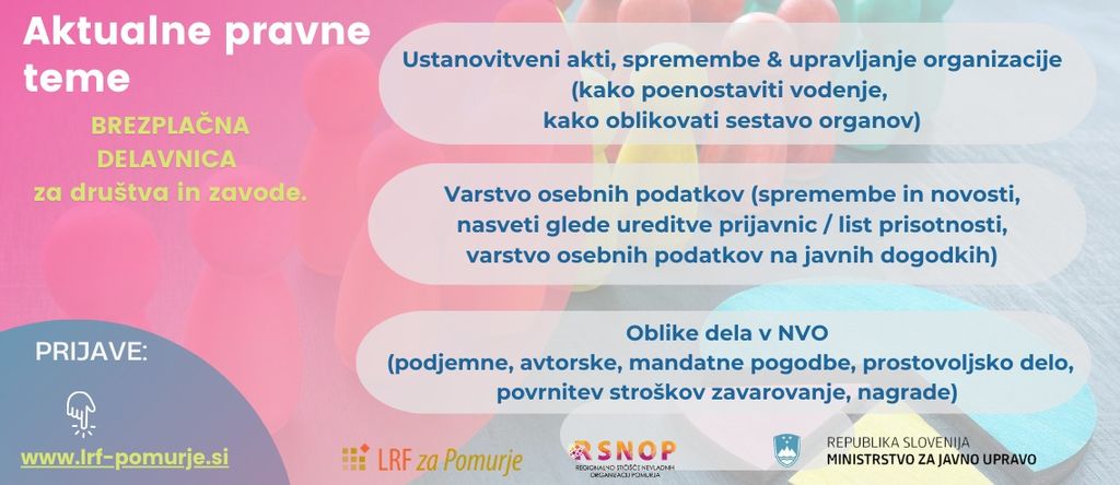 LRF za Pomurje v okviru Regionalnega stičišča nevladnih organizacij Pomurja nadaljuje serijo brezplačnih delavnic za društva in zavode o aktualnih pravnih temah.
